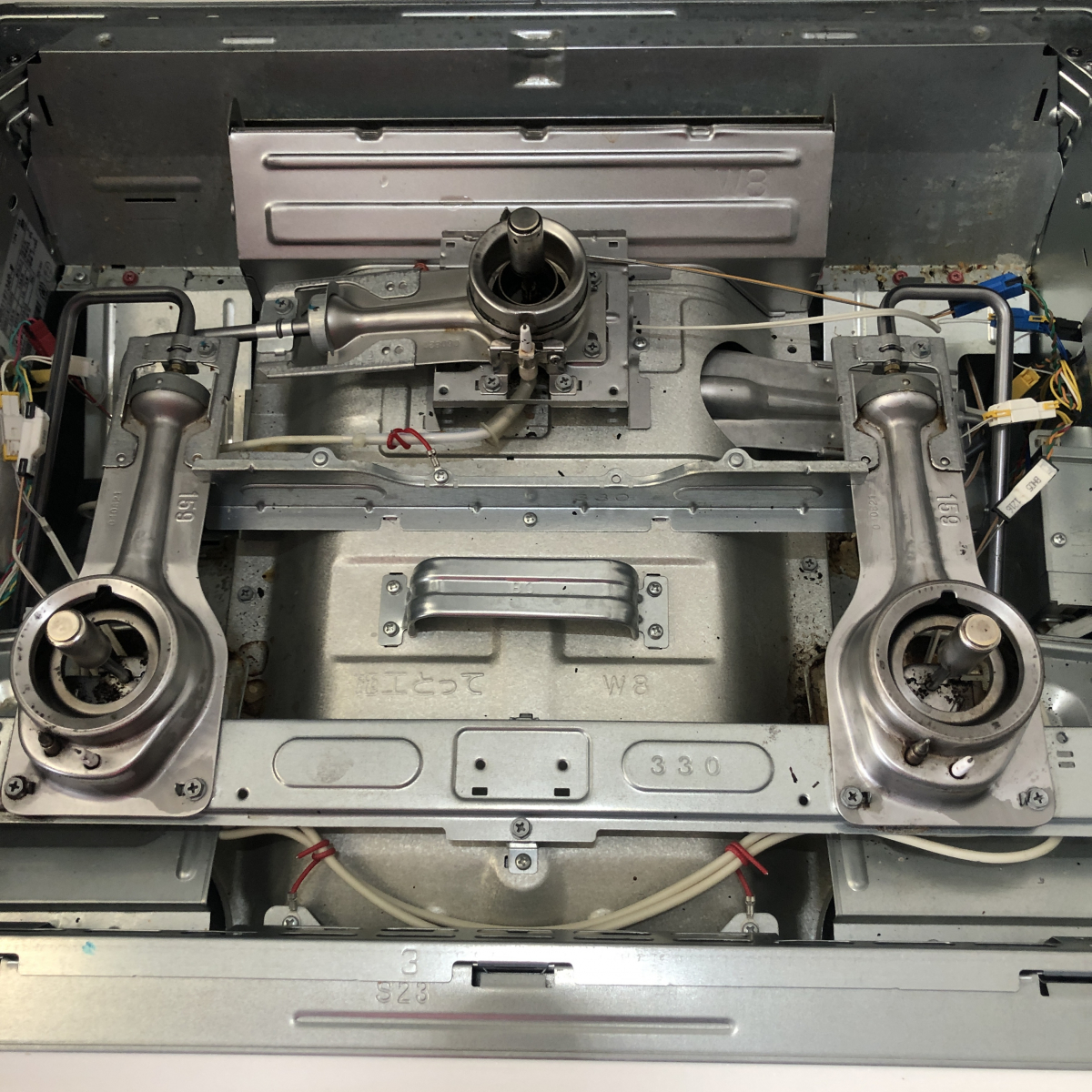 当店ではガスコンロ台のトッププレートや中を守っているゴムまで外してキレイにします!