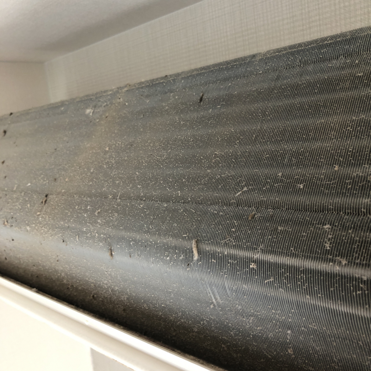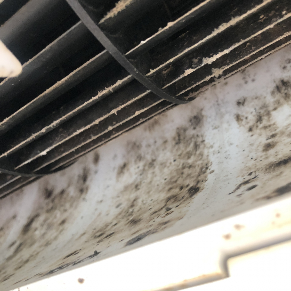 ルーバーやファン部分のカビ汚れがすぐ見てわかるほど黒く汚れており、中や上部のホコリがとにかく凄かったです。。