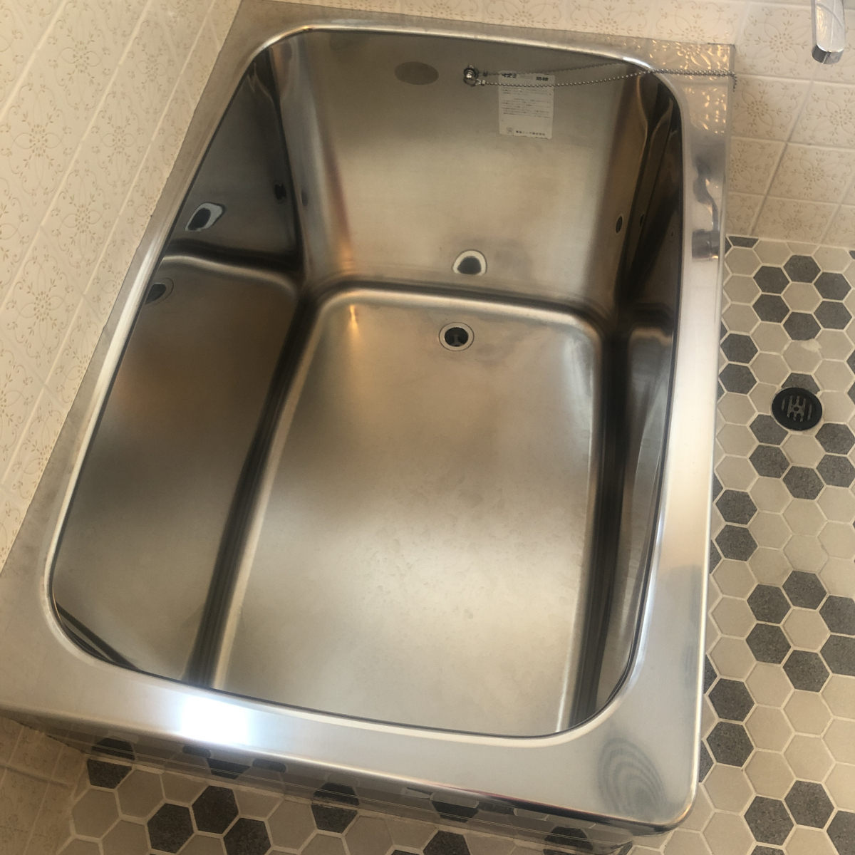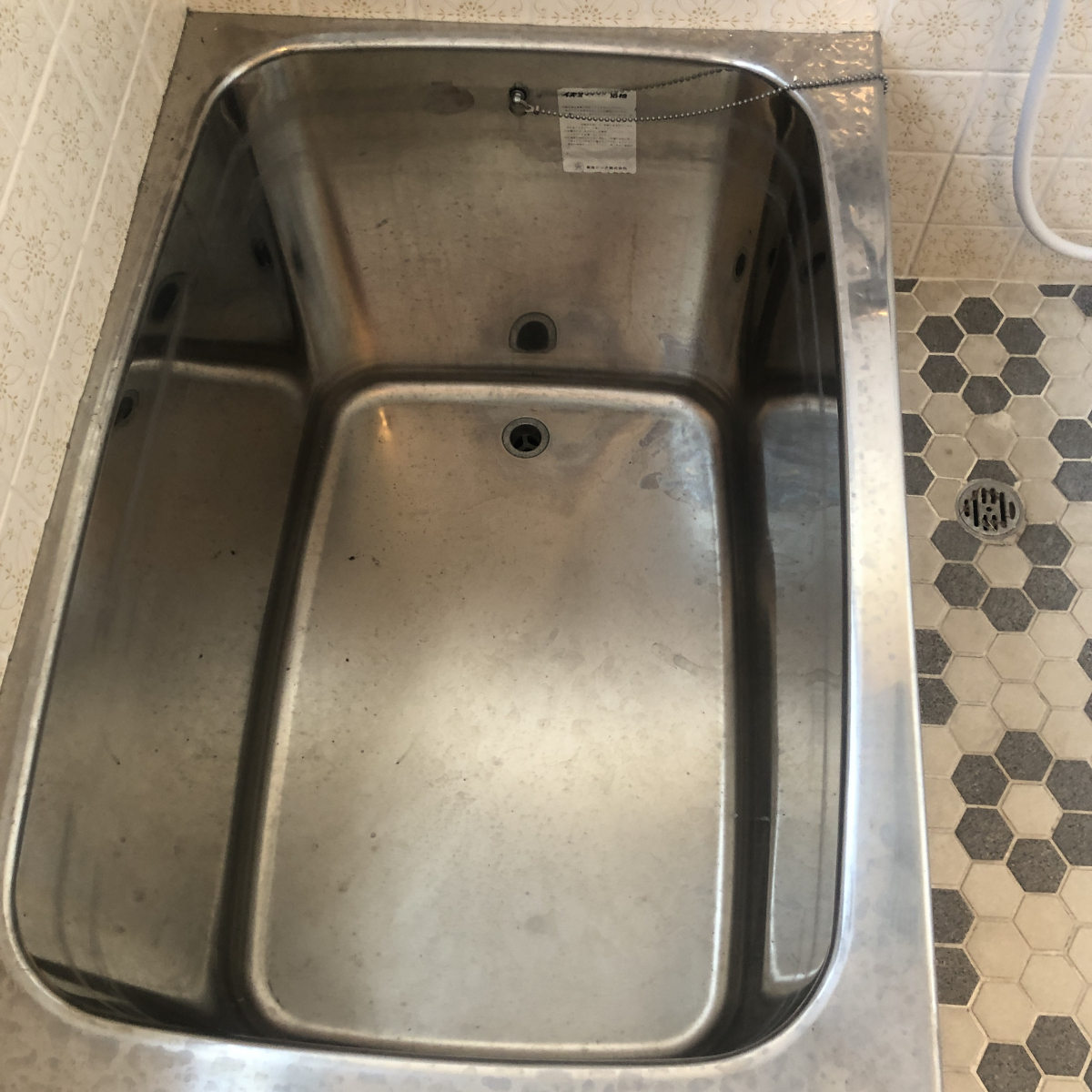 浴室はステンレスの浴槽でした。