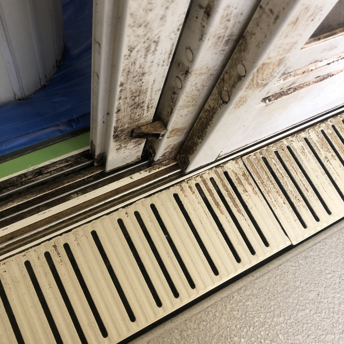 扉は3枚あり、外して両面の汚れやサッシの洗浄をしました。