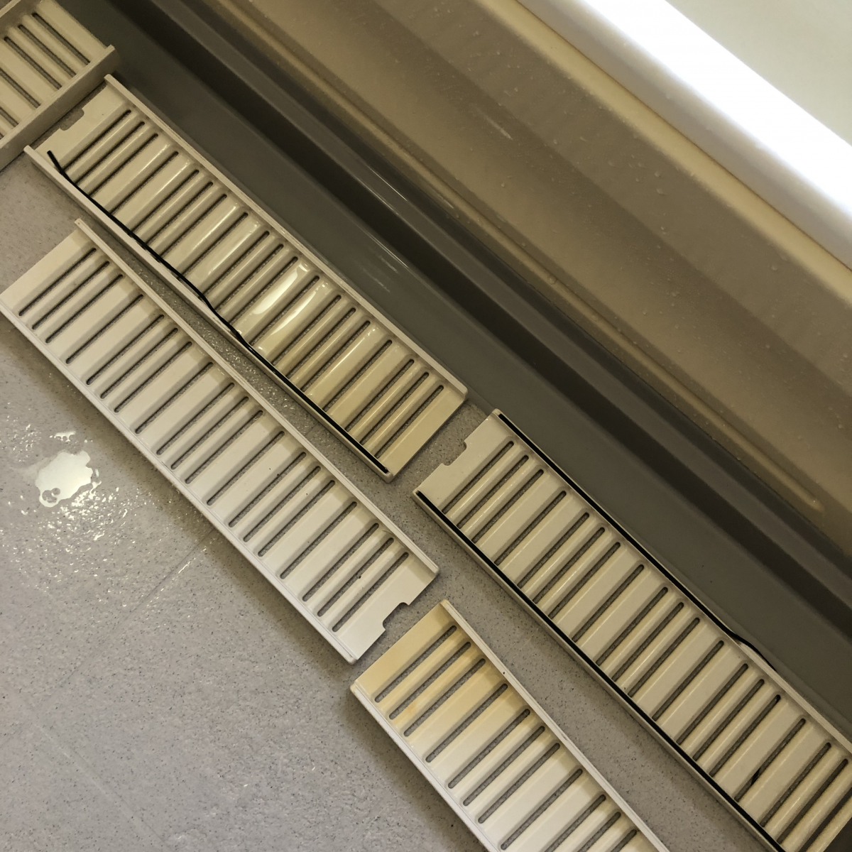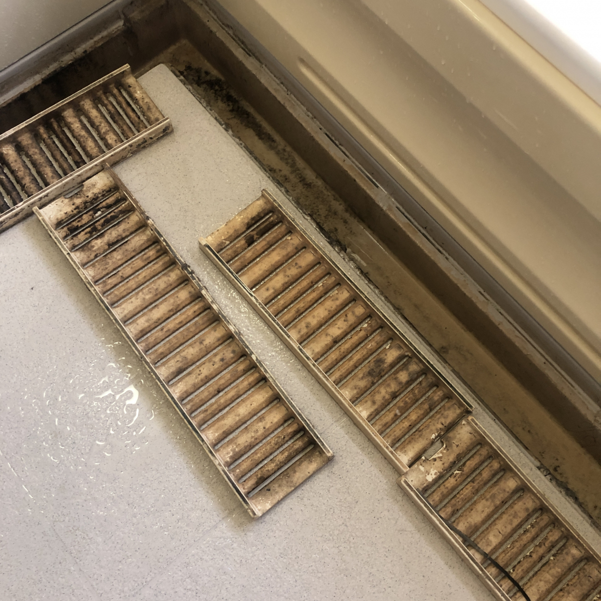 通常は1箇所あけて中身の掃除をするだけなのですが、今回の浴室は洗い場を一周排水溝になっており、かなり大変な作業となりました。