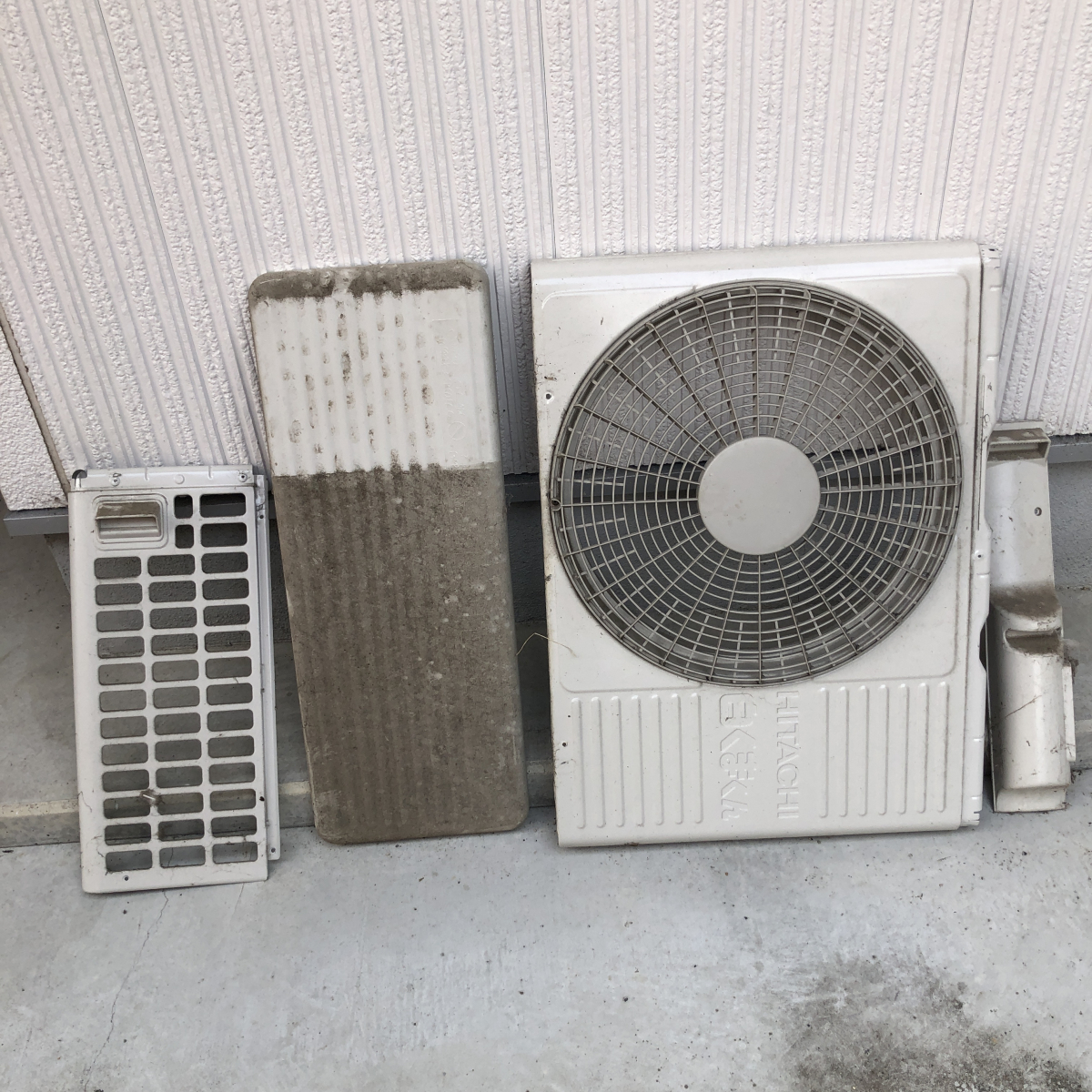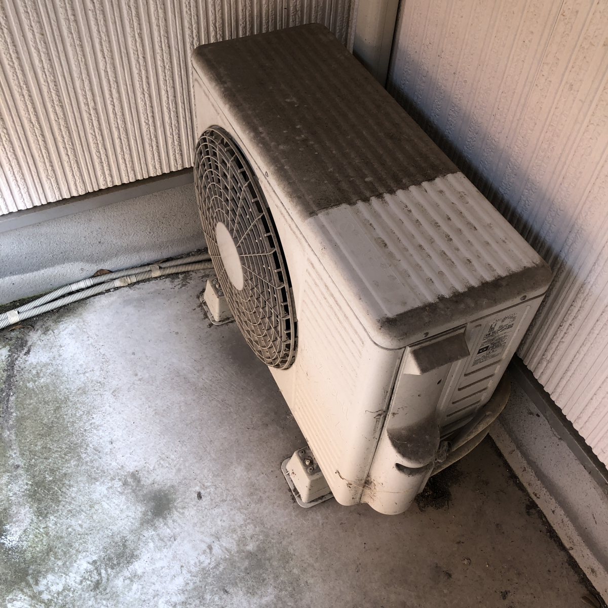 室外機は常に外に置いてあるため土埃や排気ガス、枯葉やペットの毛などで汚れてます。
