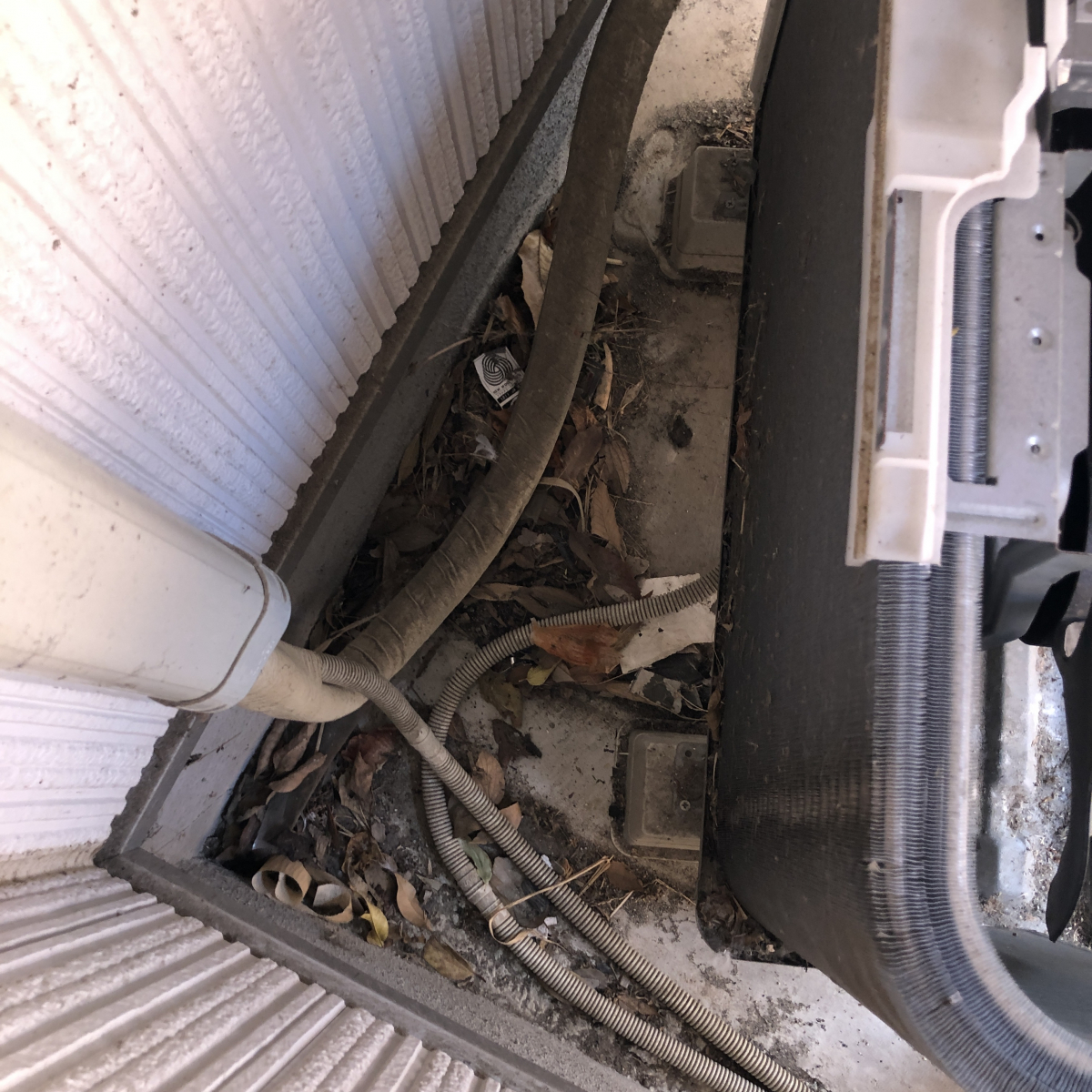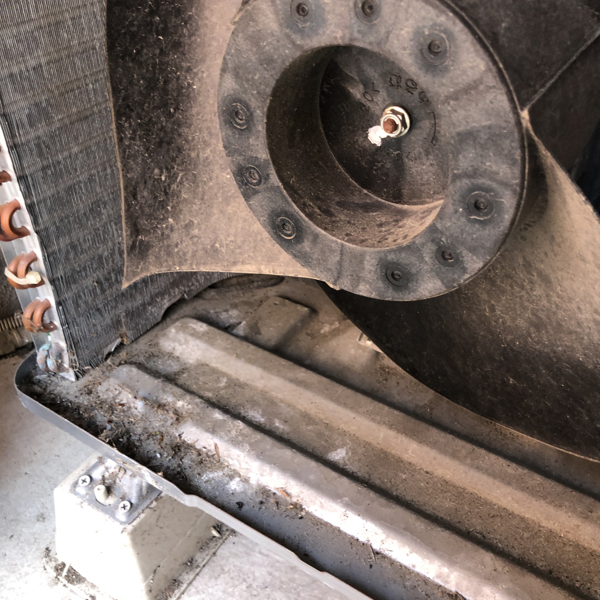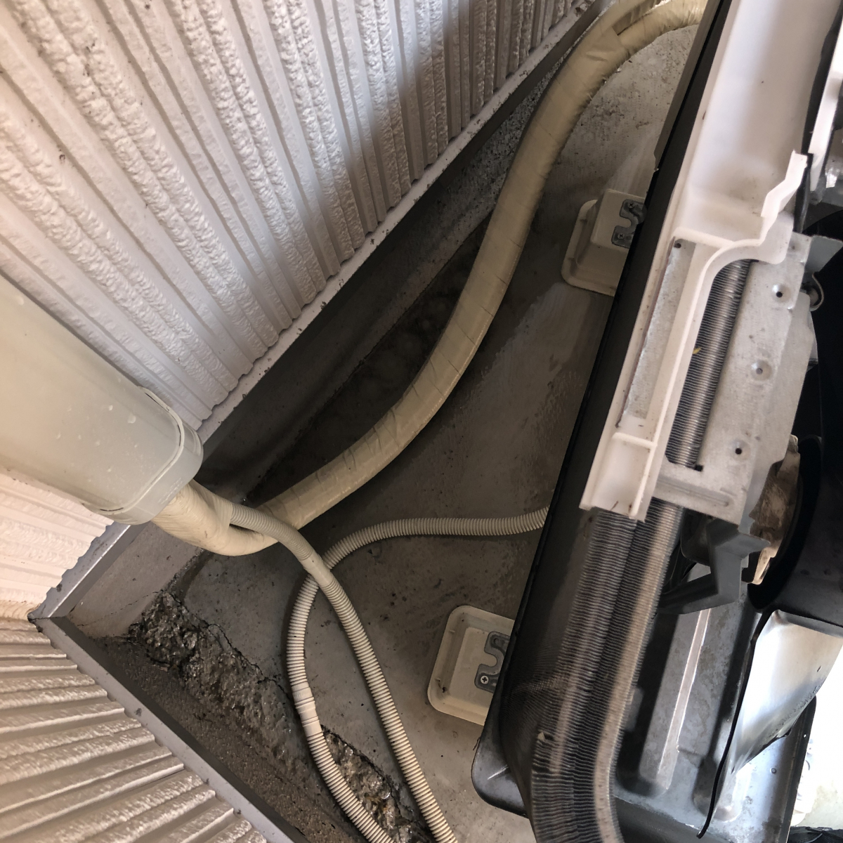 以前、室外機の上に蜂の巣があったとのことで、室外機の中にも入り込んでいたようです。