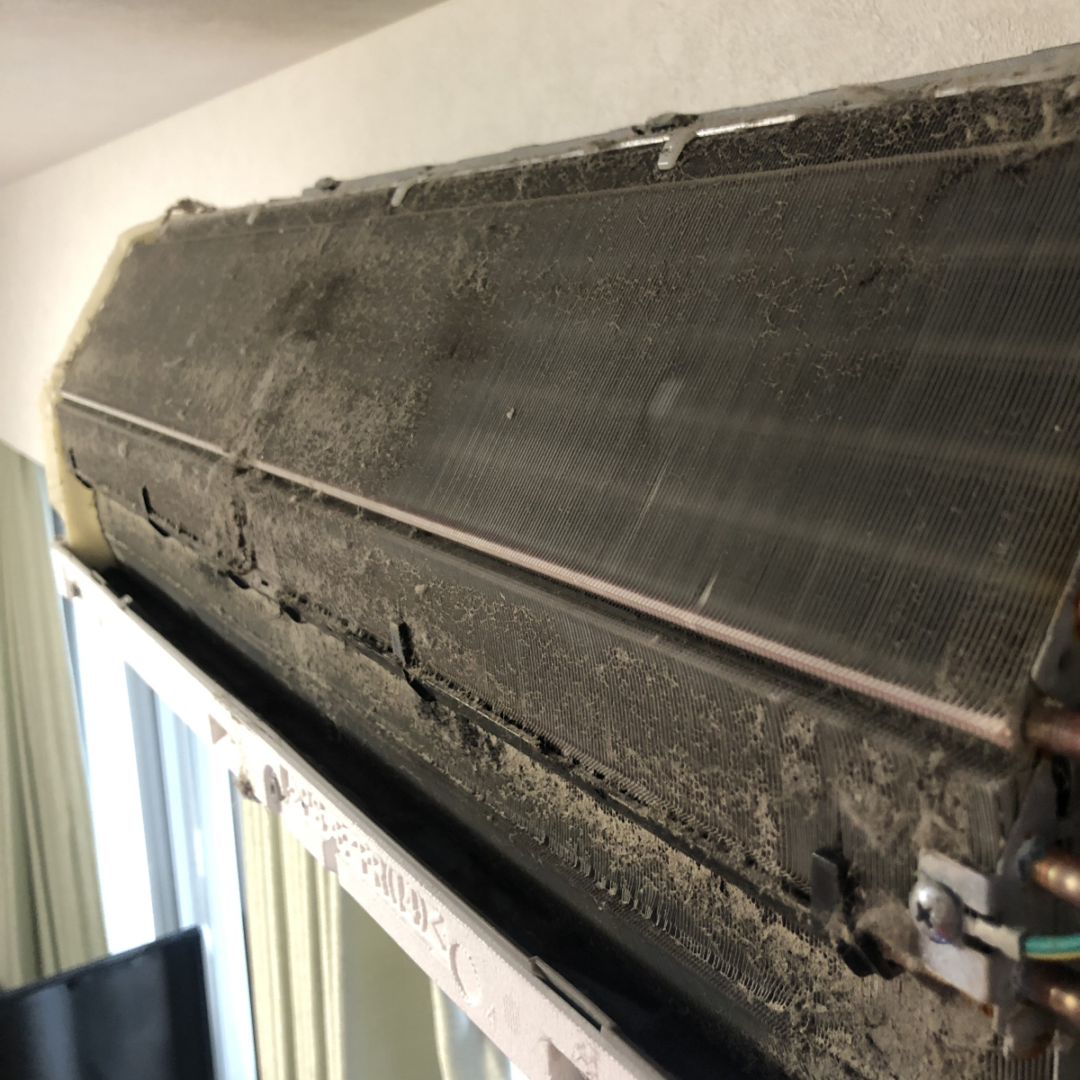 わんちゃんを飼ってらっしゃることもあり、室外機の裏は毛が凄かったです。