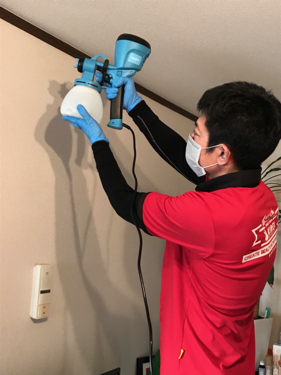 ※薬品や水を使用するため、周辺の床材、壁、建具などに薬剤が付着しないよう細心の注意を払いますが、万が一に備え、高価な調度品等は移動をお願いする場合がございます。