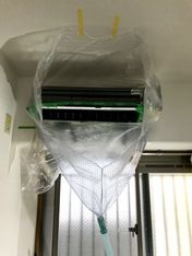「おそうじ革命」のエアコンクリーニングは、エアコンやその周りを丁寧に養生した後、エアコンを丁寧に分解していきます。