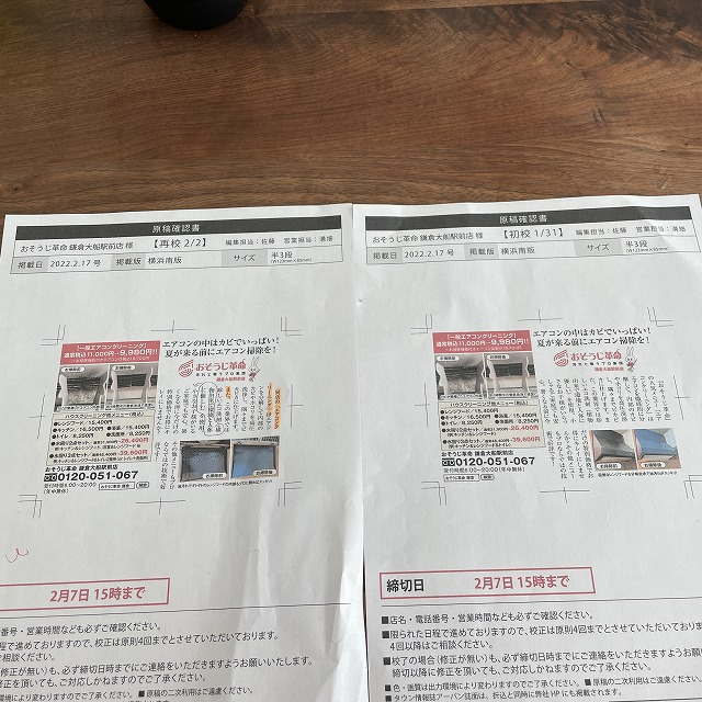 後は、掲載料の振込→2月17日に新聞折込として12万世帯に広告投下!→その後ポスティング部隊が20,000部ポスティング