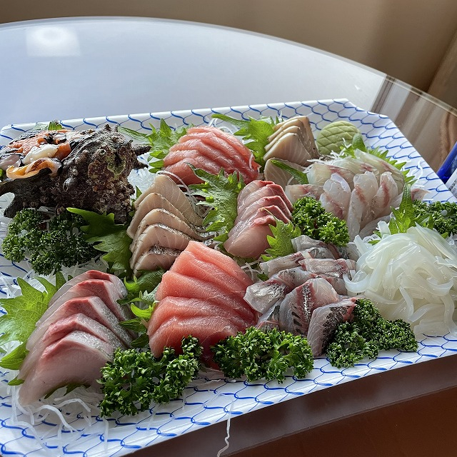 キャンプでもホテル泊でも地元の近くの魚屋さんにお造りを作ってもらい、