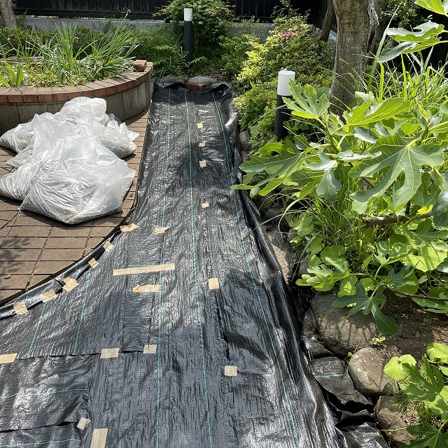 昨日は防草シートをはって、小石を洗ってもとに戻す作業。