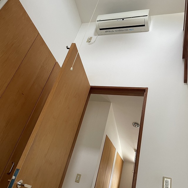 ロフトがあるお部屋の為、もともと天井が高い部屋なのですが、その上の方にエアコンが設置されてる為、
