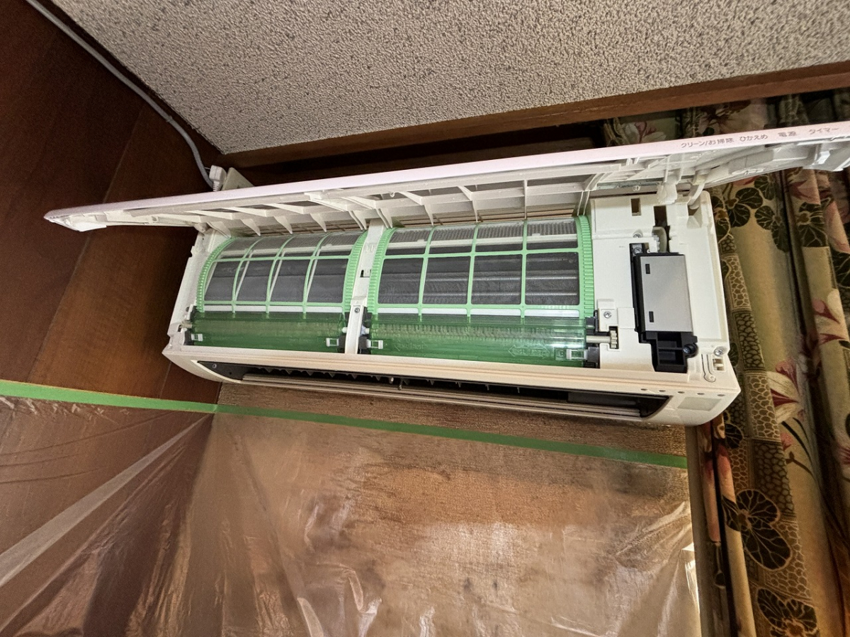 一般エアコンのご予約で伺ったら、お掃除機能付きでした。