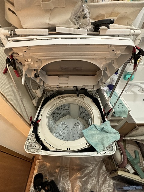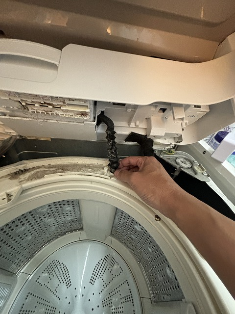 日立の洗濯機は比較的簡単で、唯一苦戦したのが、2枚目の写真のゴムのチューブを外す事でしょうか?