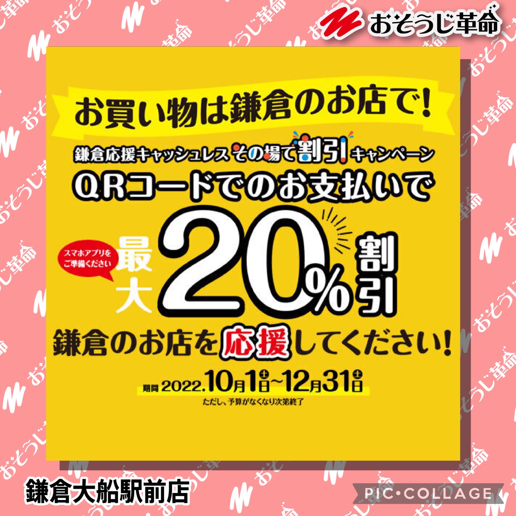 鎌倉応援キャッシュレス その場で割引をハウスクリーニングで使えるのは当店だけ!