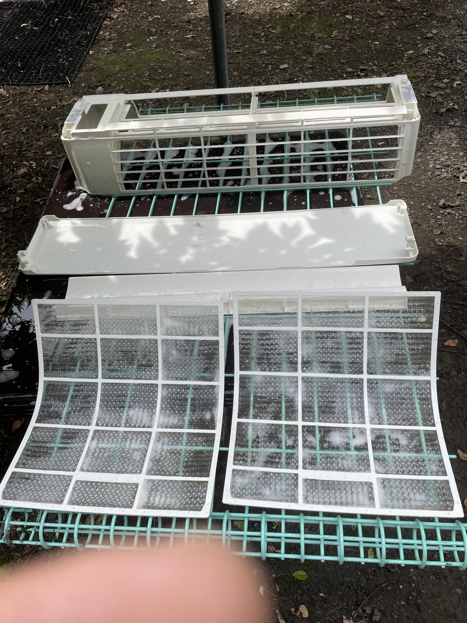 エアコンパーツを店舗のクリーンガーデンで洗浄しました! ^^