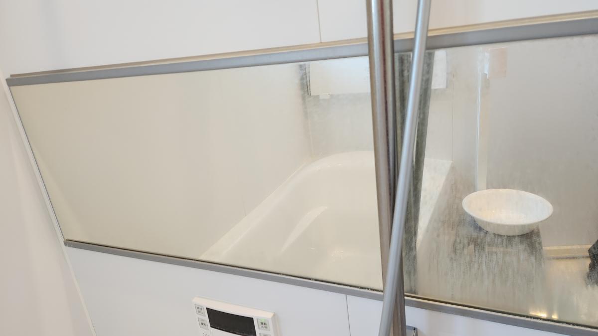 鏡の近くの注意書きに研磨剤を使わないようにと記載されています。