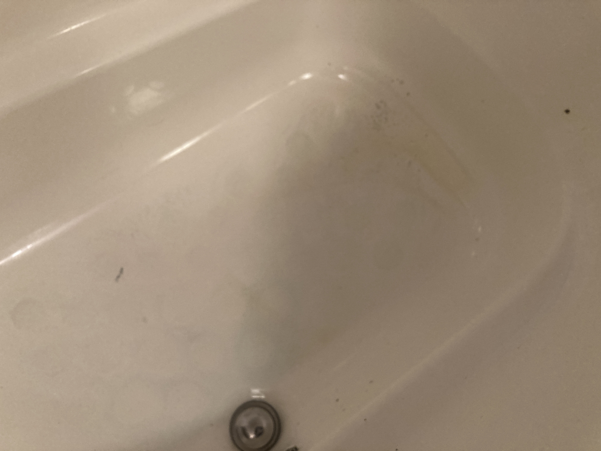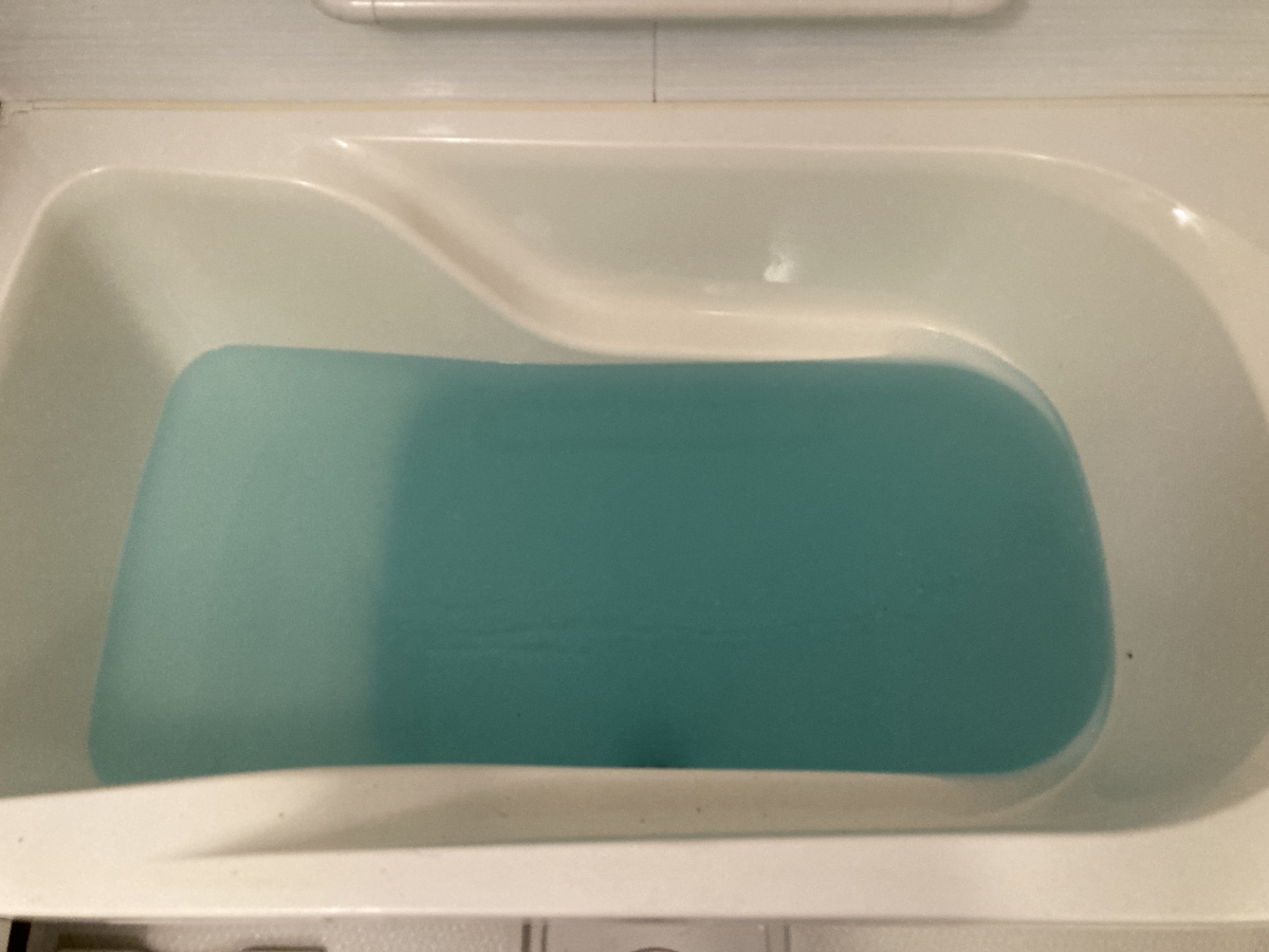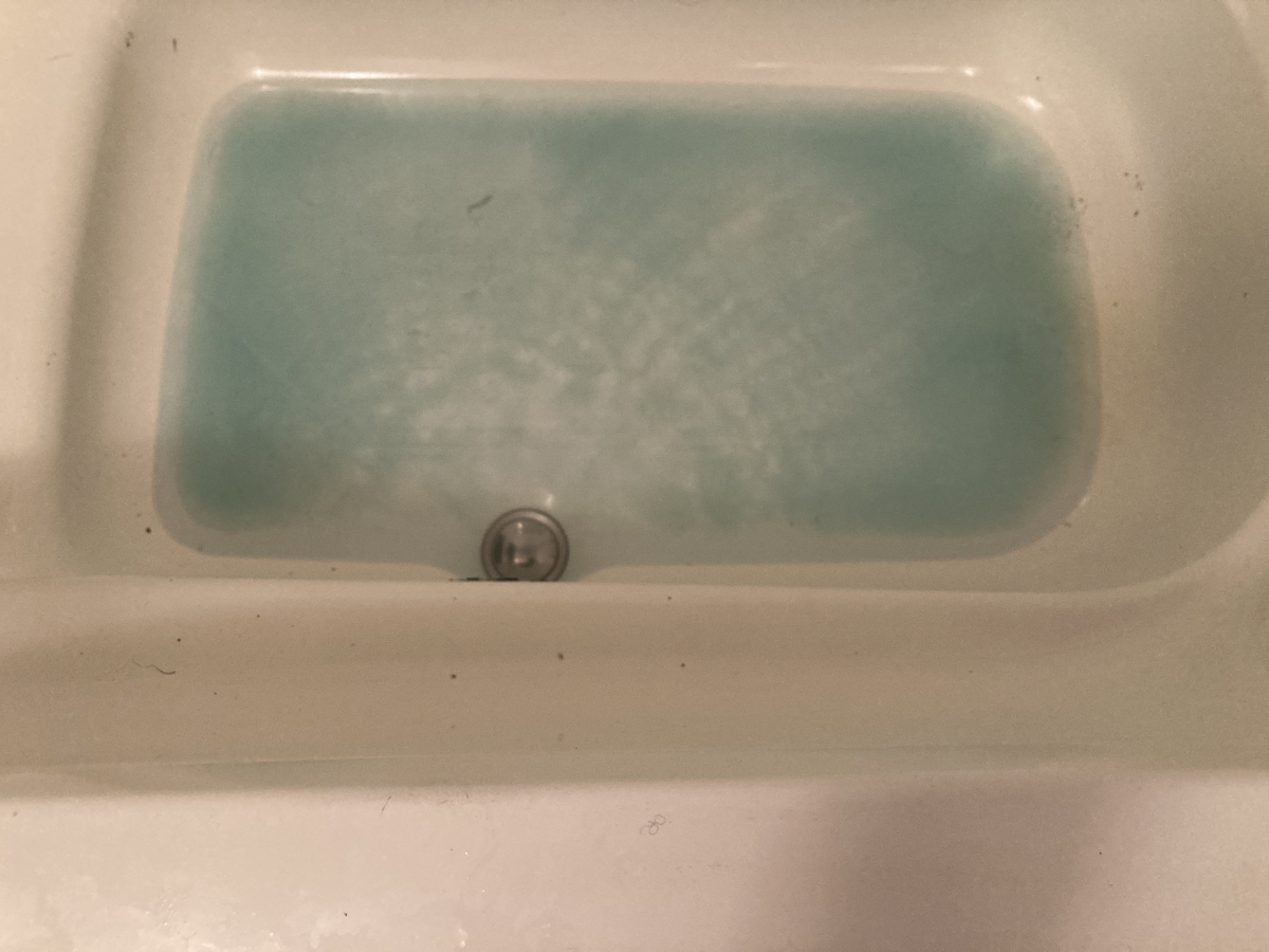 洗浄後お湯を抜くと浴槽の底に汚れが沈殿しています、今回もかなり配管から汚れがでてきました。