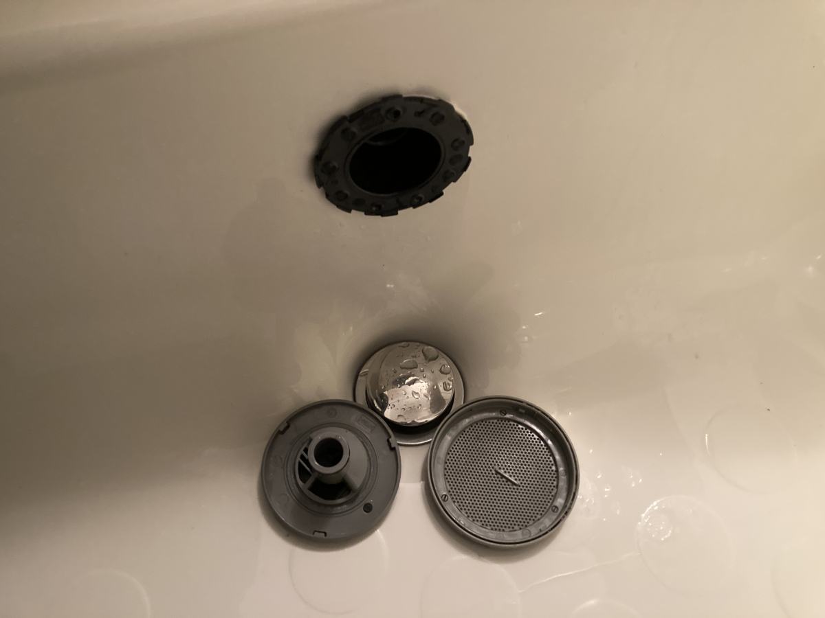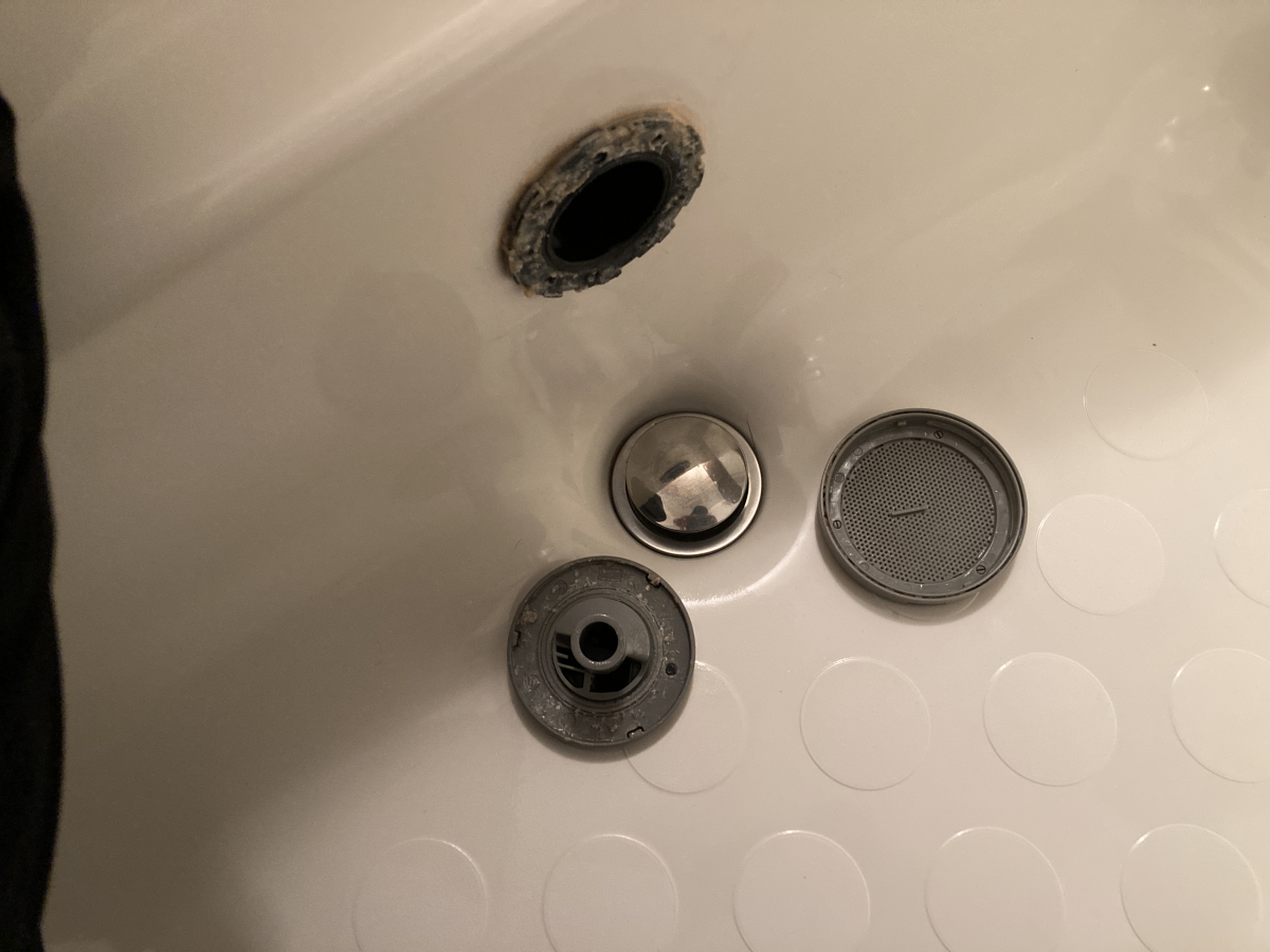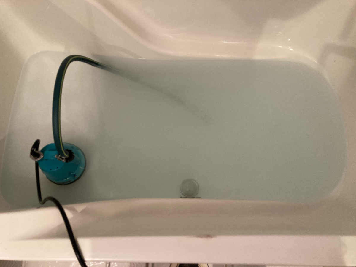 洗浄後お湯を抜くと浴槽の底に汚れが沈殿しています、今回もかなり配管から汚れがでてきました。