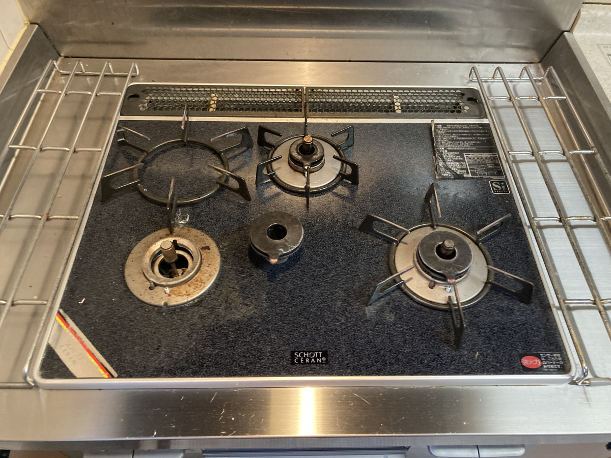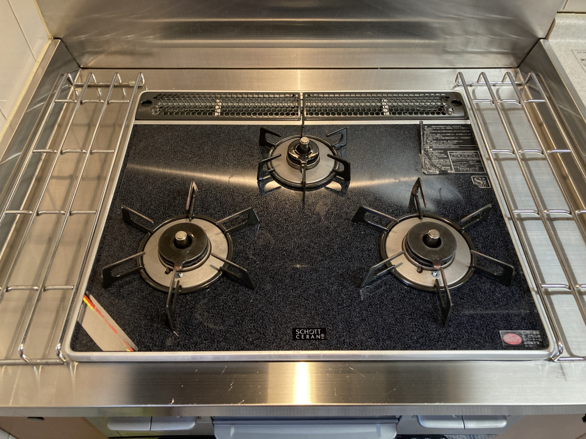 ガスレンジは油汚れが付着していますので、こちらはアルカリ性の洗剤を使用します。