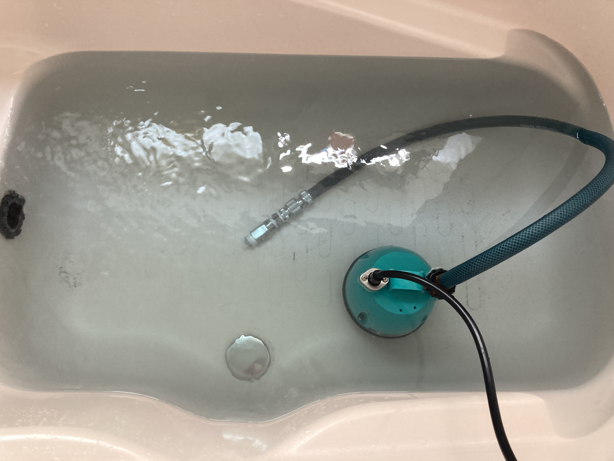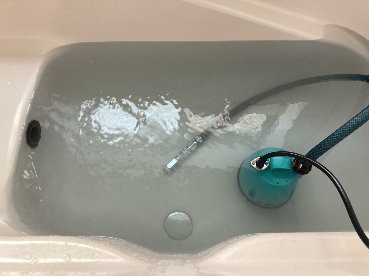 ある程度お湯をはったのち、水中ポンプを動かしながら追い焚きをしていきます。