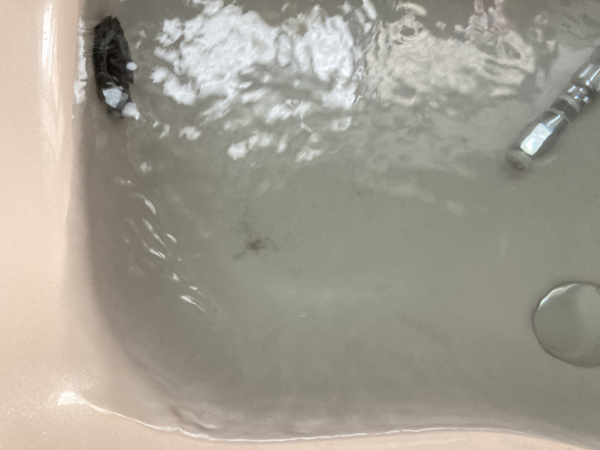 数分すると中から髪の毛や黒い汚れが流れ出て、お湯の底に沈殿しています。