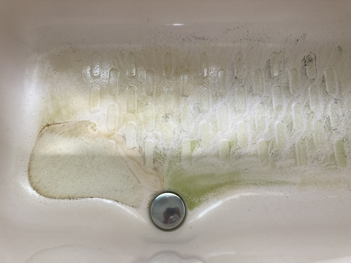 洗浄後お湯を抜くと、浴槽のふちと底に流れ出た汚れがこびり付きます。