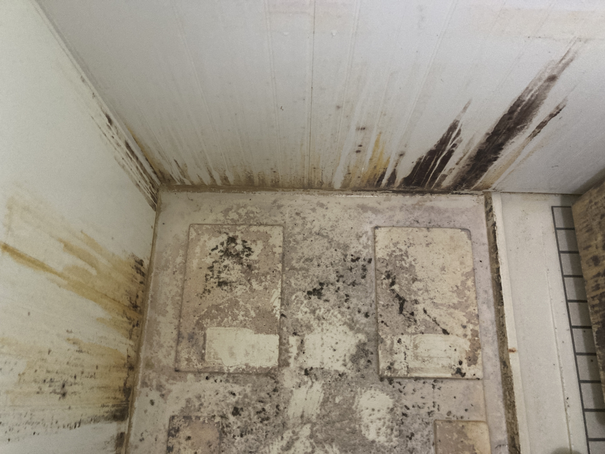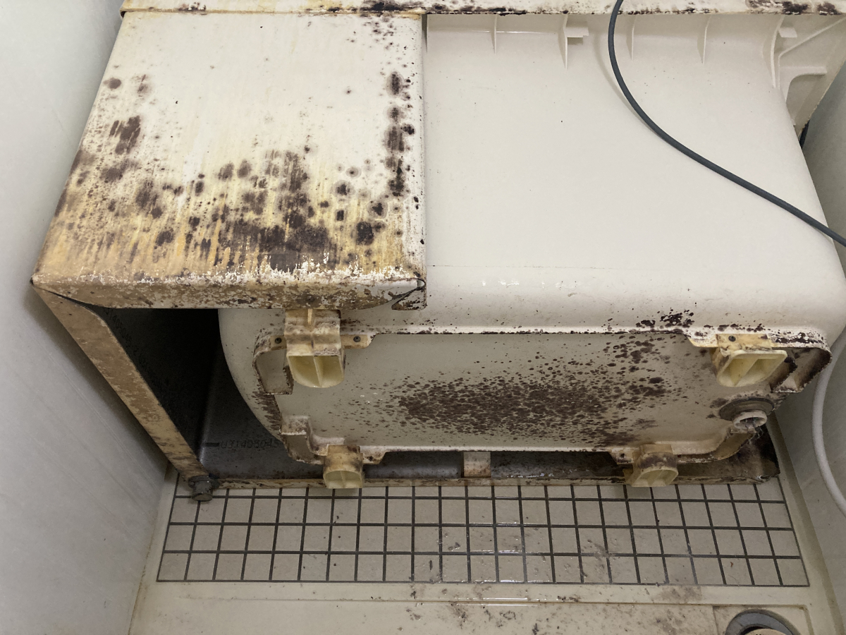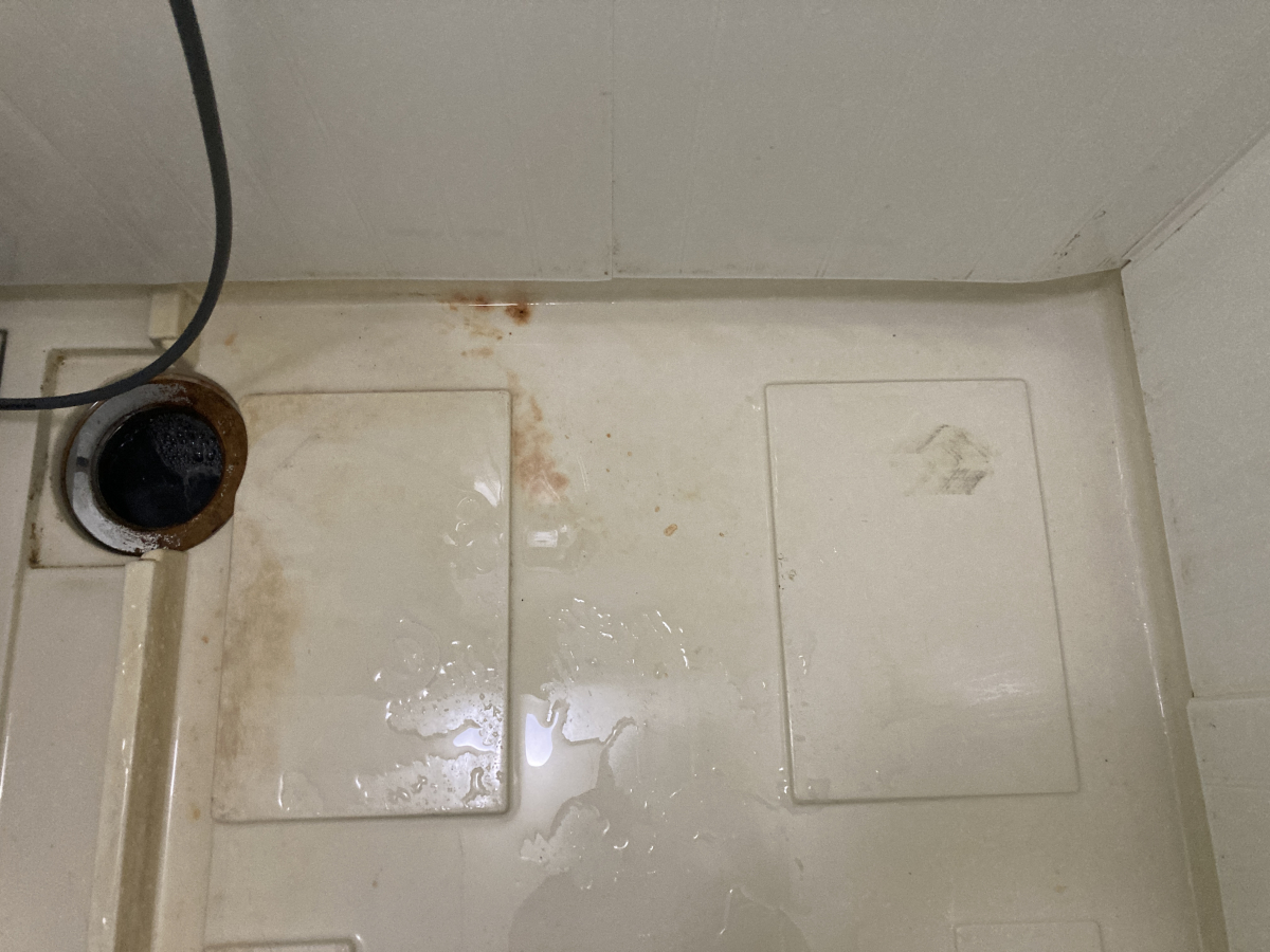 浴室内の壁面にもカビ汚れは付着していましたが、浴槽の裏側や防水パンのような部分は石鹸カス汚れとカビ汚れが大量に積み重なっていました。