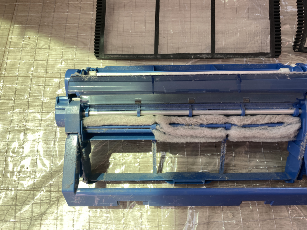 自動お掃除機能付きエアコンはフィルターの汚れを自動で回収してくれますが、流石にここまでゴミが貯まってしまうとフィルターにも汚れが残っています。