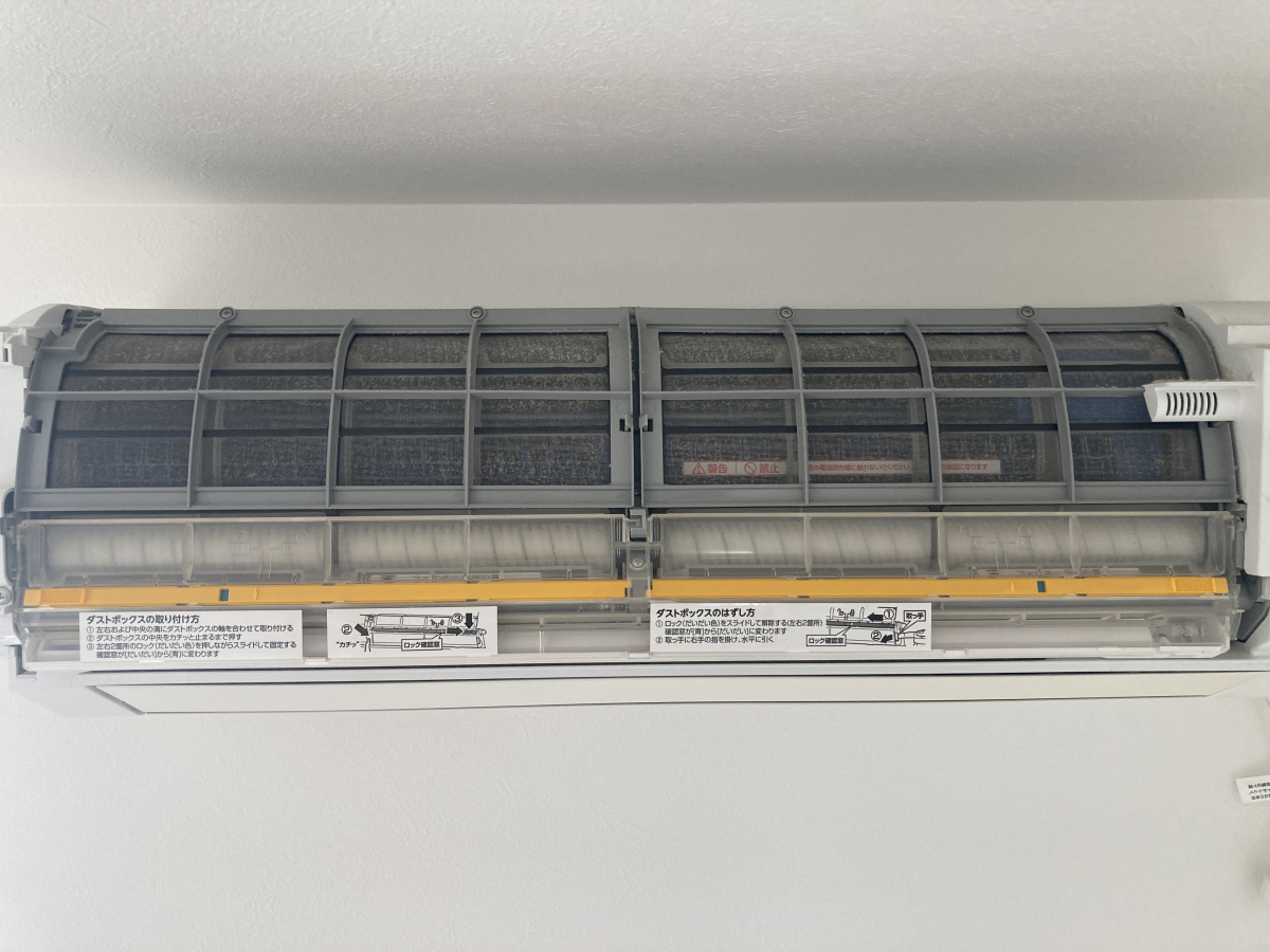 まずは洗浄するために本体を分解していきます、こちらの機種もフィルター自動お掃除機能がついていますので内部にお掃除ユニットがあります。