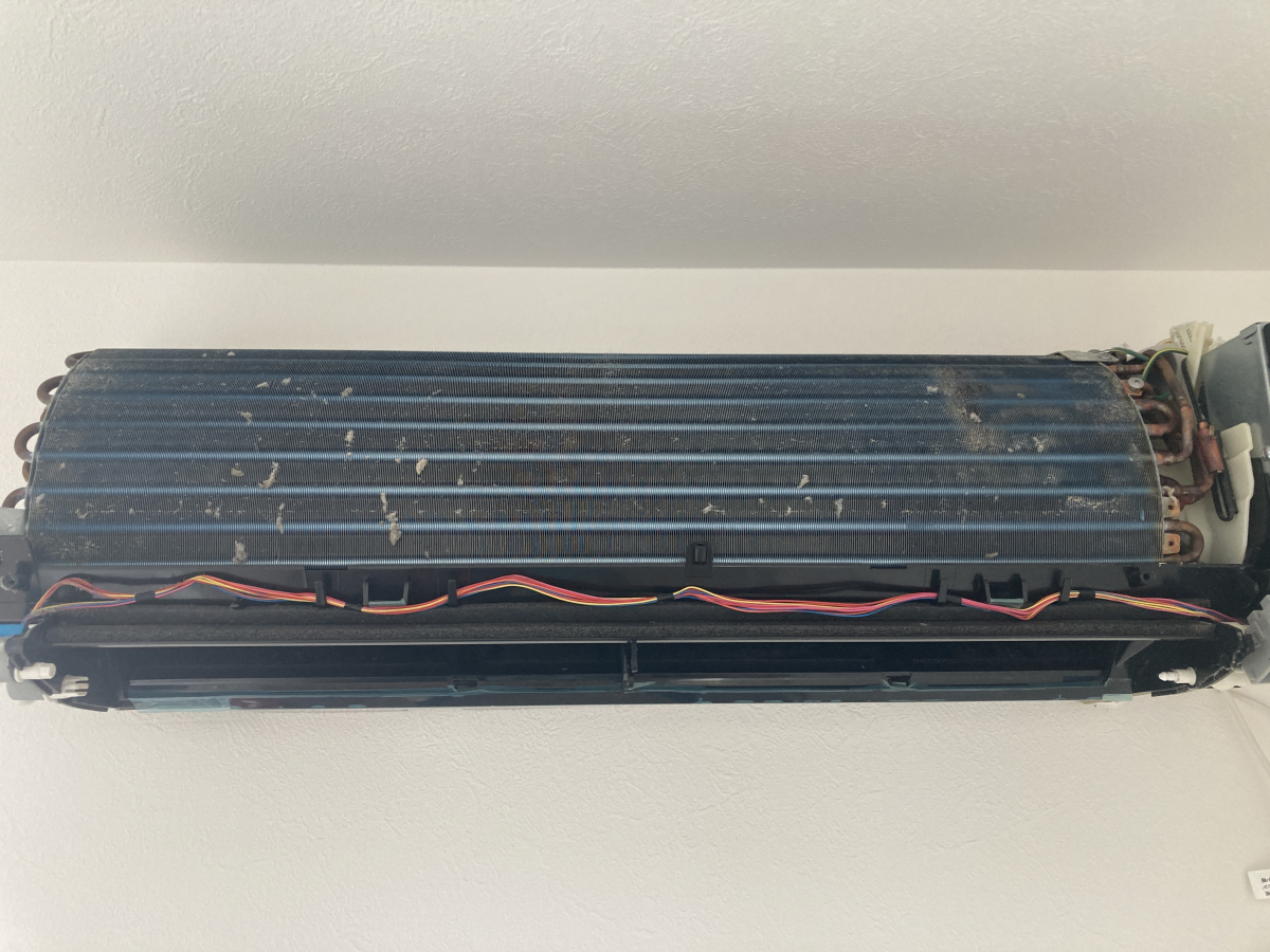 熱交換器にはほこりが付いているのがわかります、フィルターお掃除機能も万能ではないですね。