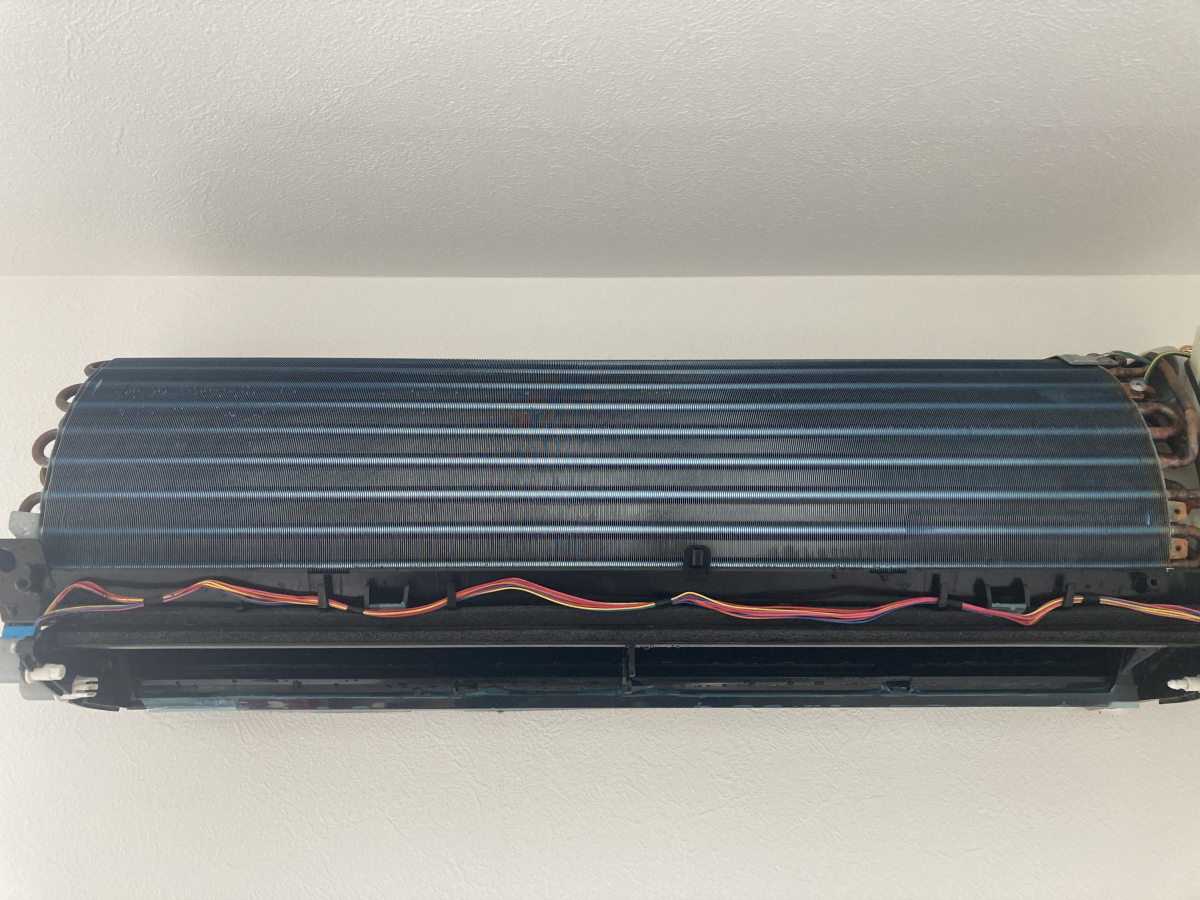 お掃除ユニットを取り外すと熱交換器がむき出しの状態になります。