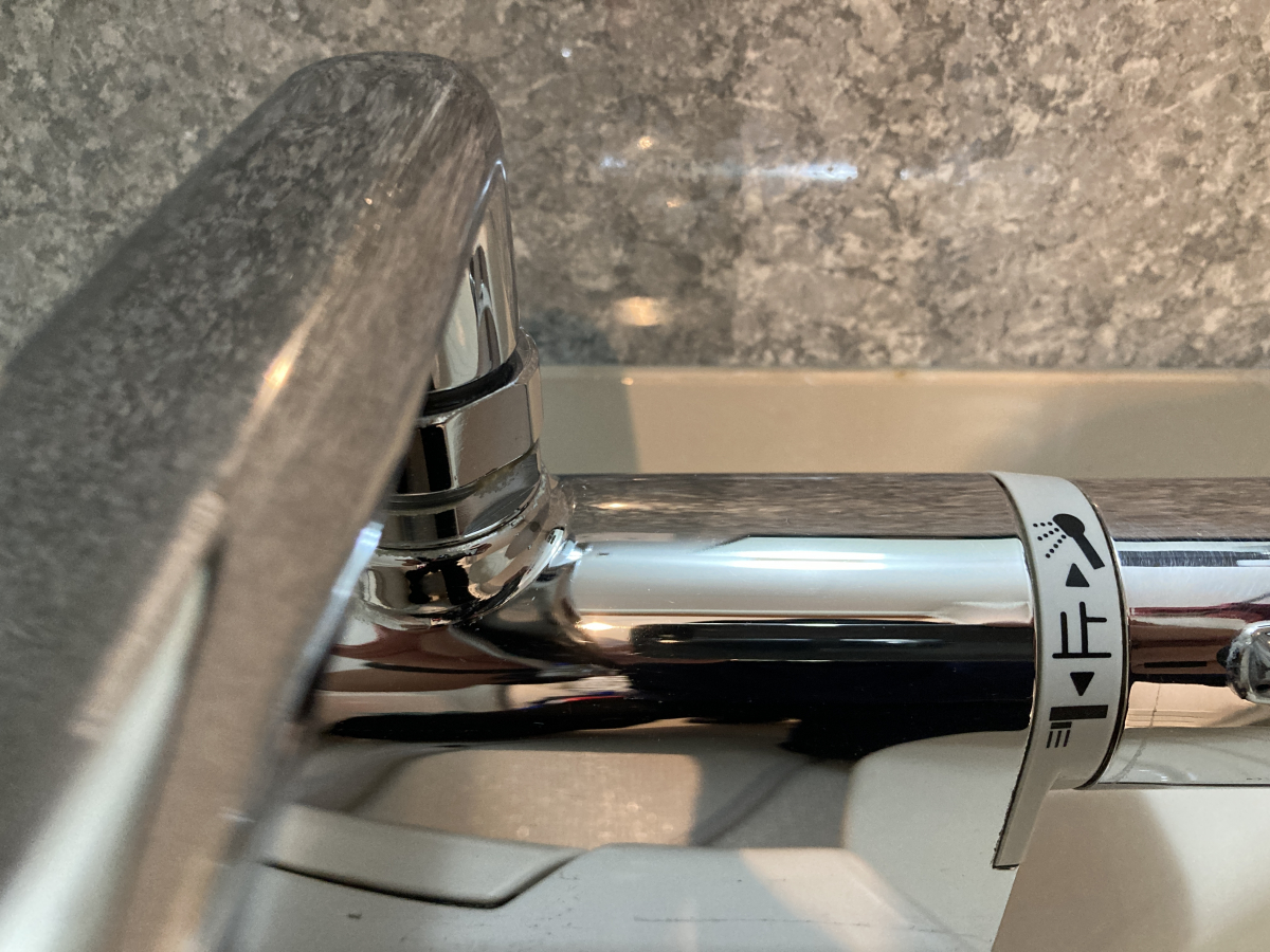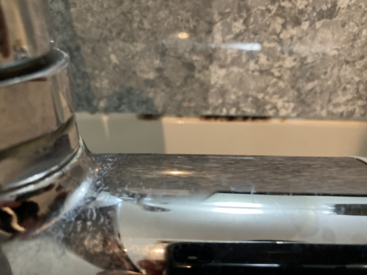 カランの裏側にもカビ汚れが付着しています。