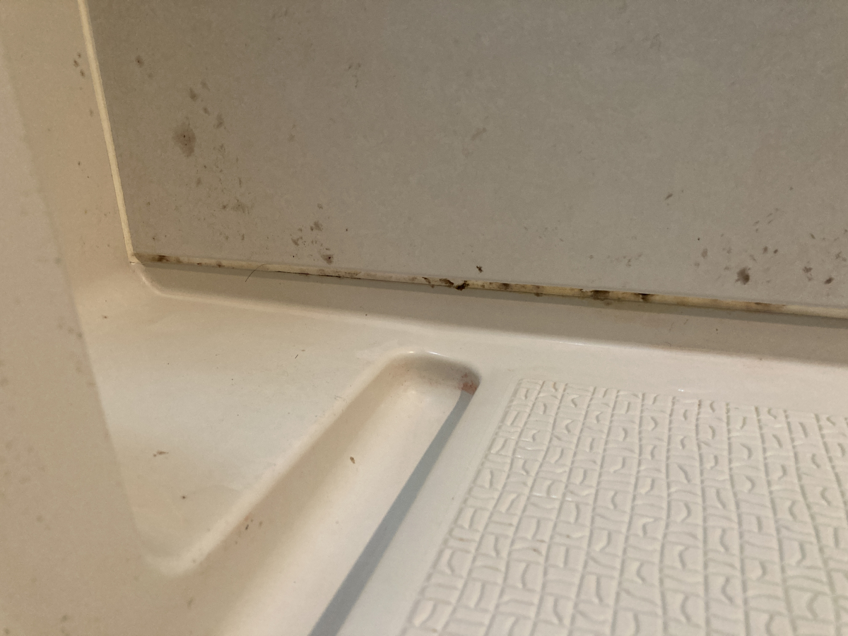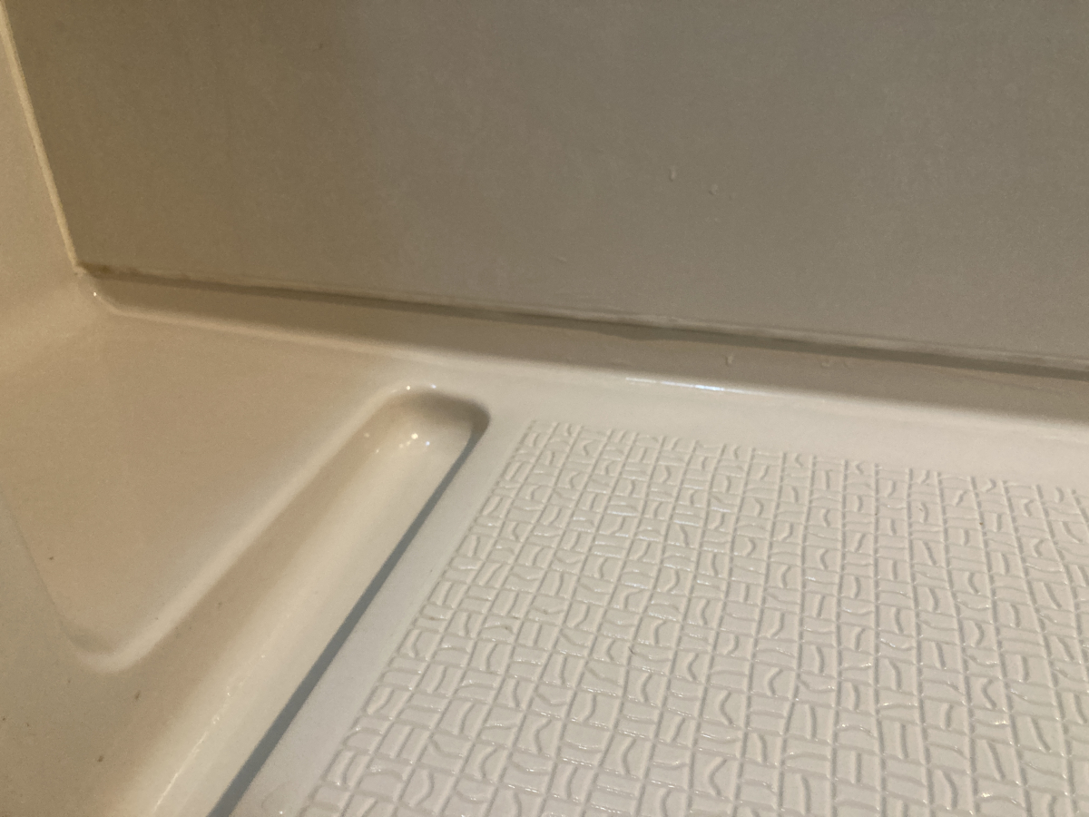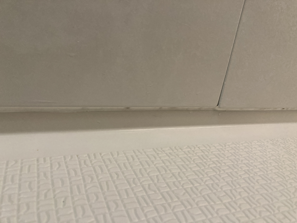 壁面と床面の境目にあるカビ汚れはきれいに落とすことができました。