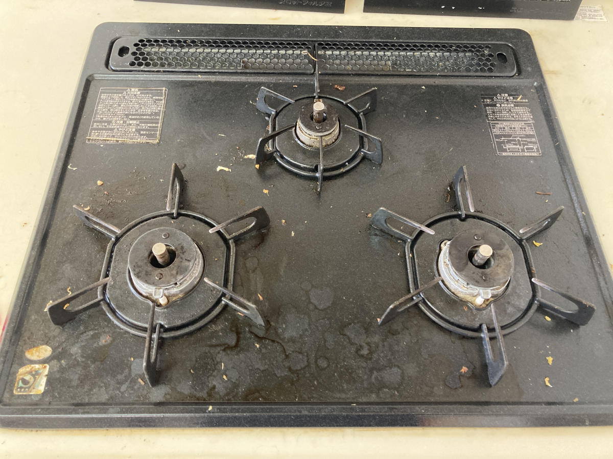 今回のキッチンは特にガス台の汚れが目立ちました。