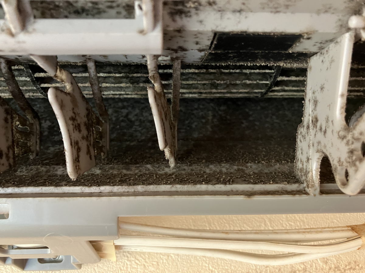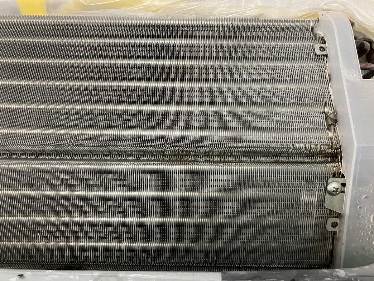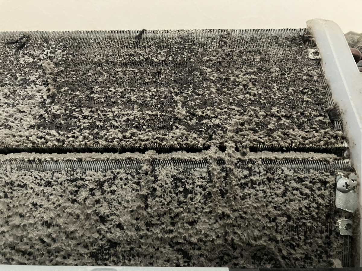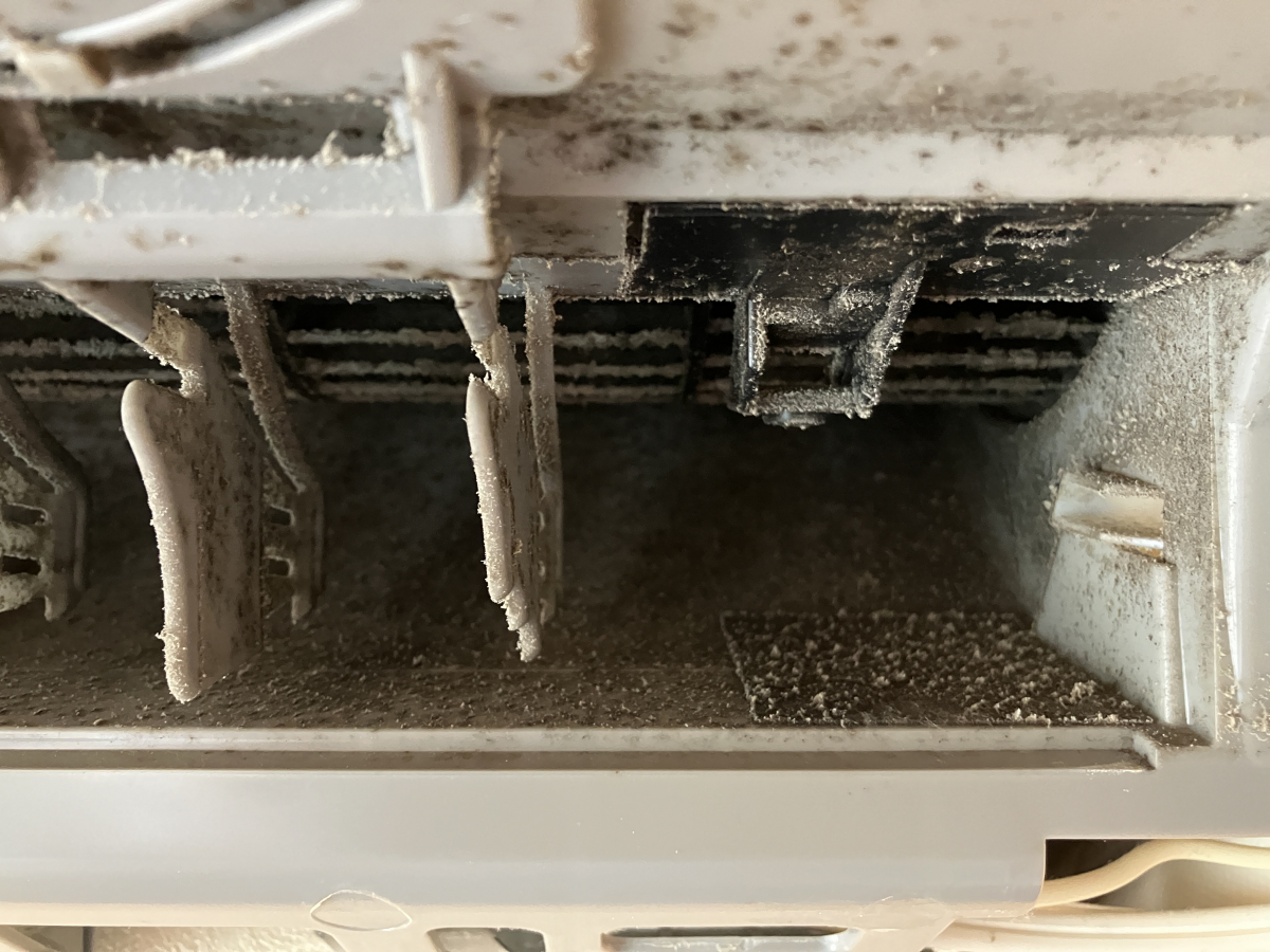 内部熱交換器は素材部分が見えなくなるほどの、ほこりが付着しています。