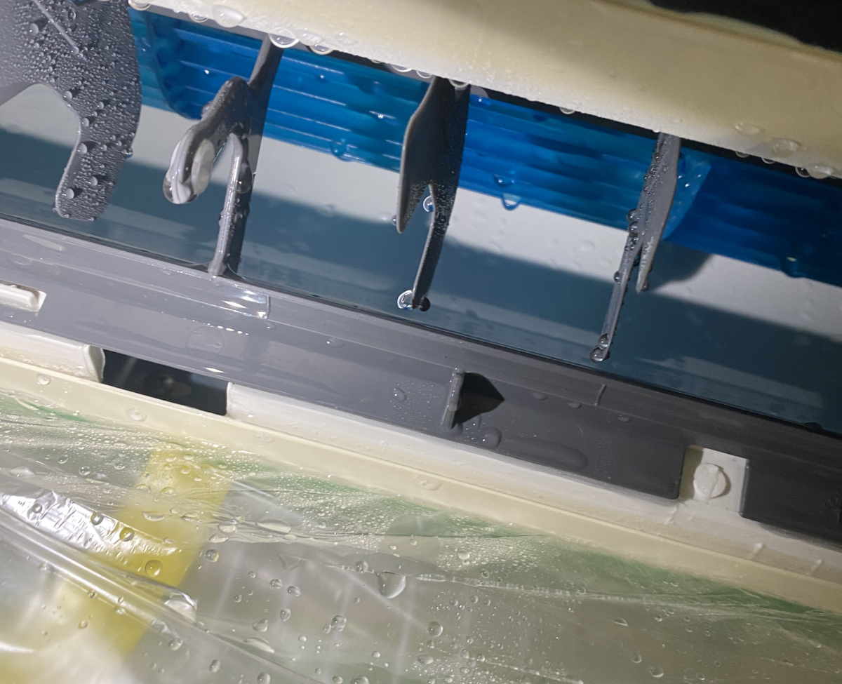 実はこのファンカビだらけで、パッと見は黒かったのですが、掃除をしていくうちに青くなっていき、ここまでキレイになります!