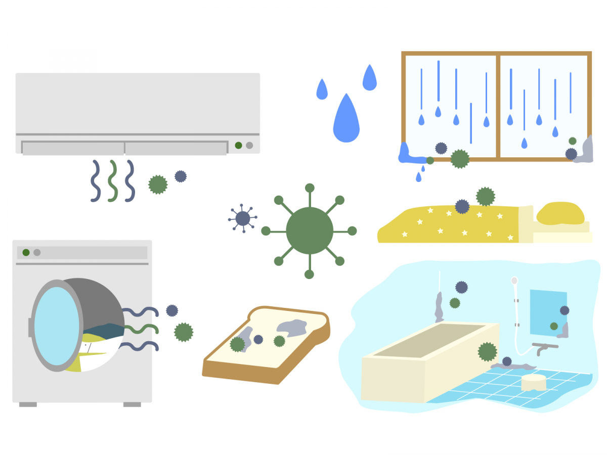 黒カビは、家庭内や建物の湿度が高い場所、特に浴室や水回りなどで発生しやすいです。