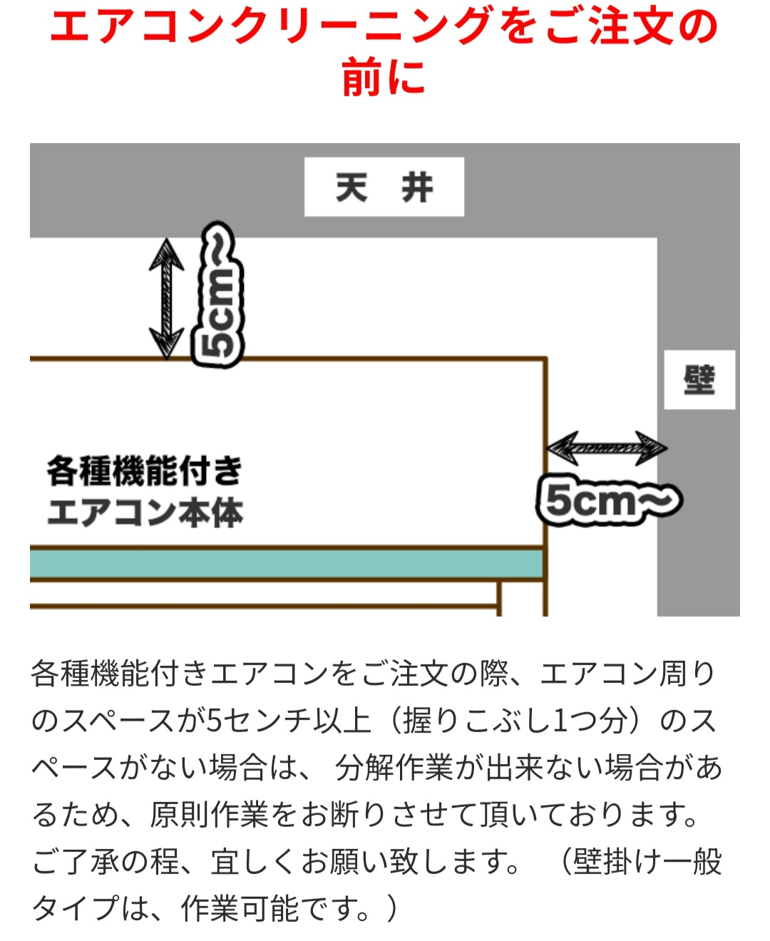 天井や壁にぴったりエアコンが設置されているとクリーニングが難しい場合もあります。