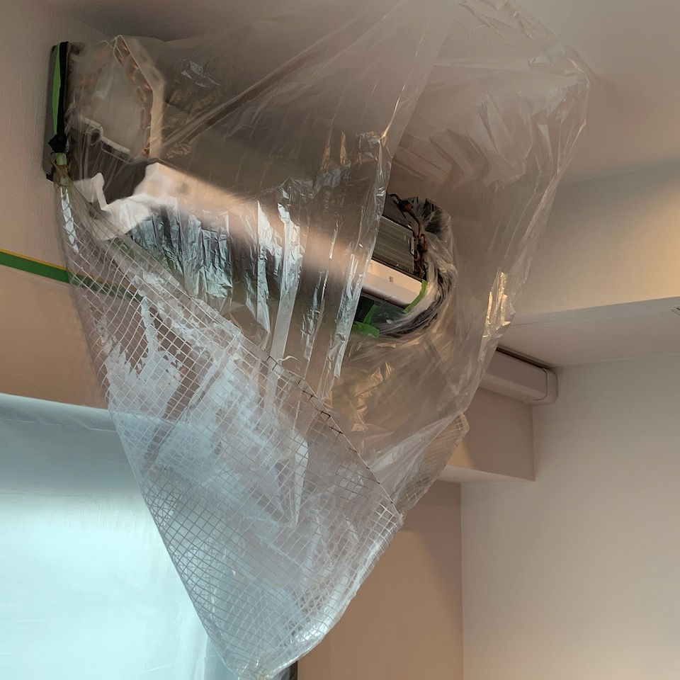 私たちプロの業者は、エアコンの熱交換器を十分に洗浄できるまで分解し、配線やモーターなどの電子部品が水に濡れないようカバーしてから、エアコン専用の高圧洗浄機と洗剤で汚れを徹底的に洗い流します。