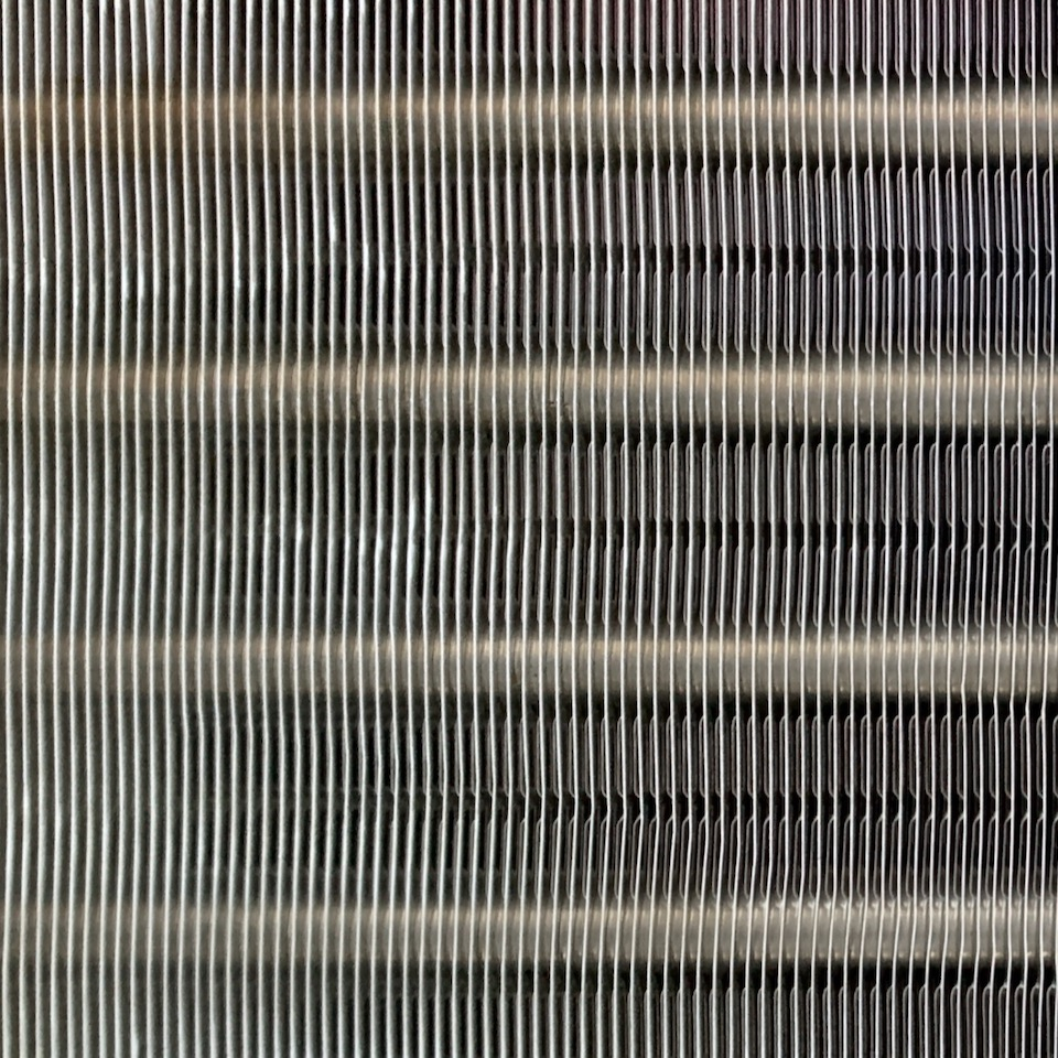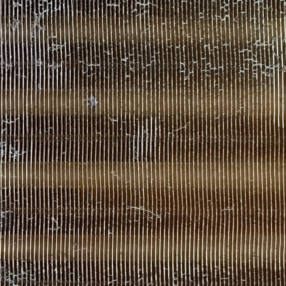 これがエアコンの効率の要である「熱交換器」です。この細かいフィンの間を風が通ることで空気が冷やされたり、暖められたりするわけなのですが、実はこのフィンの汚れがエアコンの効率(経済的な運転)に非常に大きな影響があるんですね。