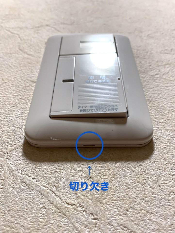 ここにマイナスドライバーや似たような先の平たいものを差し込み、ちょっとねじるるか、引き剥がすような力を加えると、外側のプラスティックのプレート(前面プレート)が簡単に外れます。無理して傷をつけないように注意してやってくださいね。