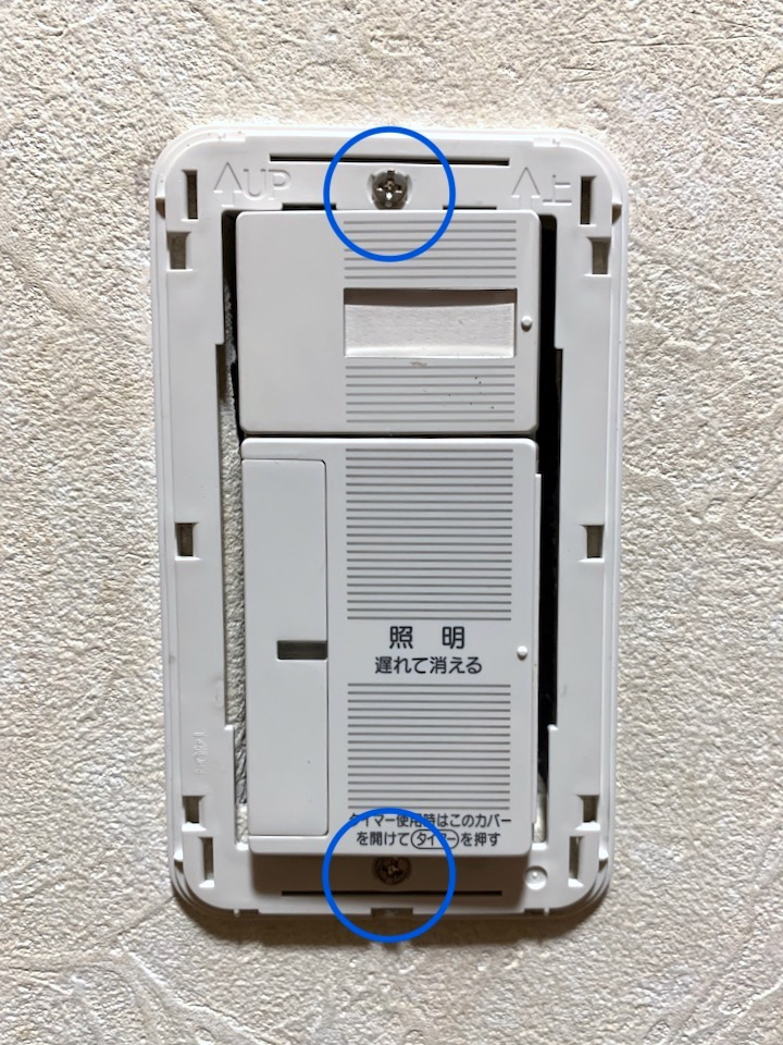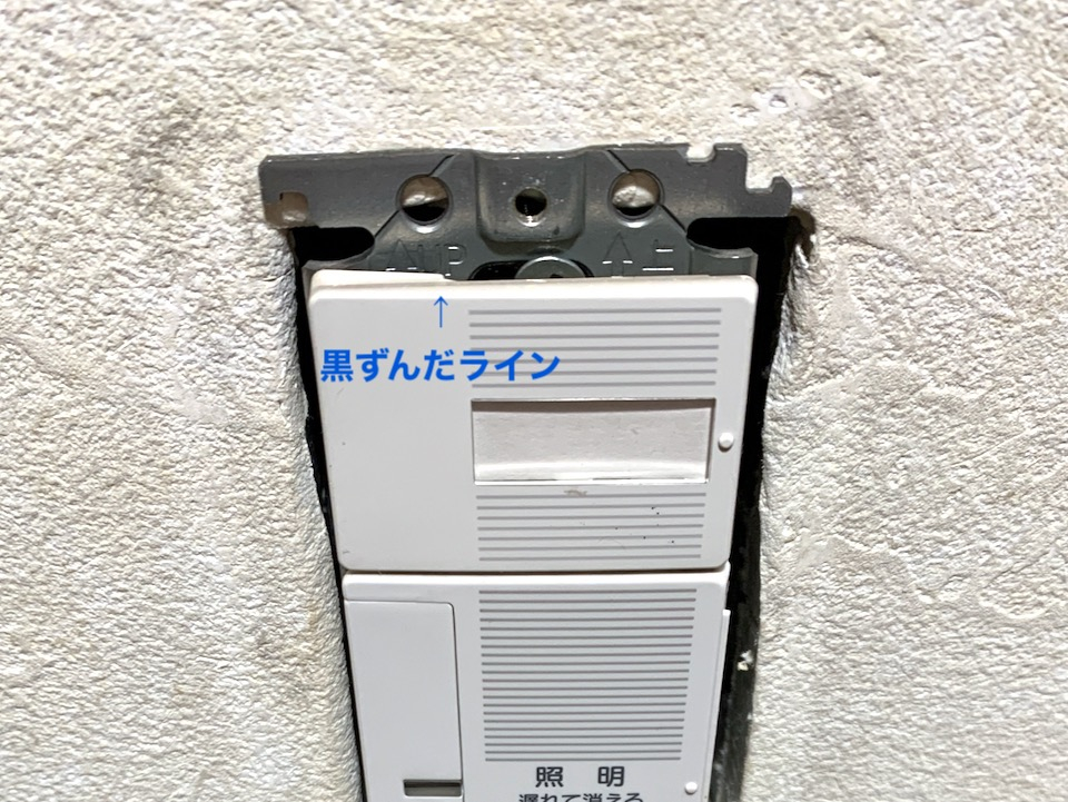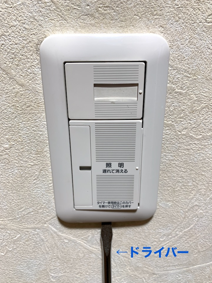 この、ちょっとスッキリしないスイッチプレートですが、スイッチプレートを外してしまえば簡単に綺麗になります。