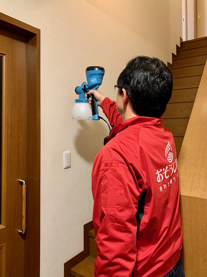 ウイルスの不活性化に非常に効果的な次亜塩素酸ナトリウムを主体としたおそうじ革命独自の除菌用薬剤「除菌プロ」を家の中全体に噴霧して除菌するサービスです。