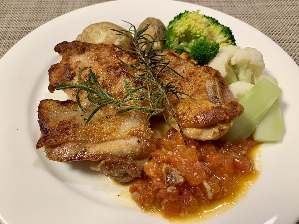写真は先日テレビで紹介されていた、鶏モモ肉のパリパリ焼きです。