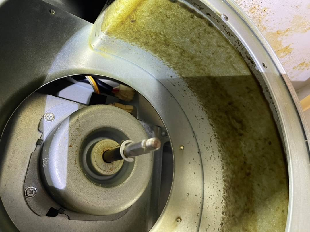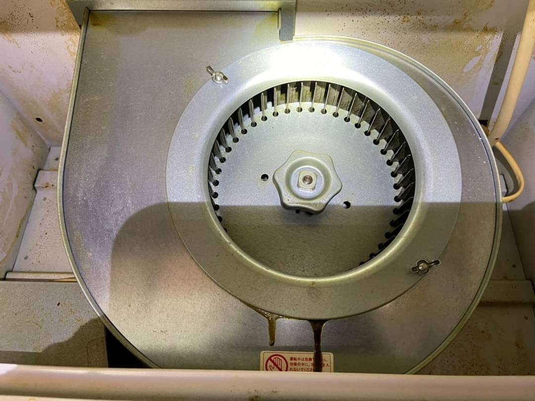 でも、内部のファンや細部までお掃除しないと、ギトギトの油汚れはどんどん蓄積され、レンジフードの運転効率は悪化、吸い込みが弱くなるなど不具合が生じることも…。