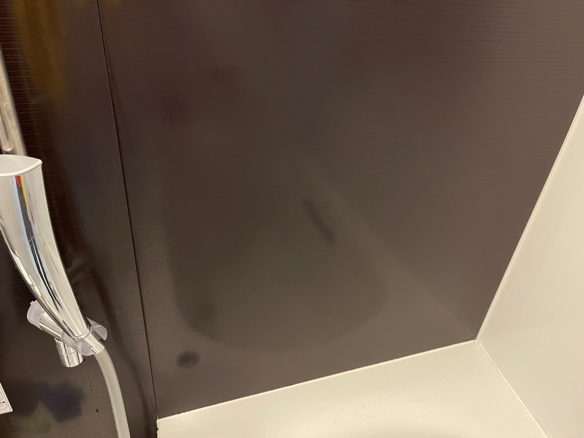 ここの壁も水垢で真っ白でしたが、7、8回全面おそうじさせて頂きかなりキレイになりました!!!