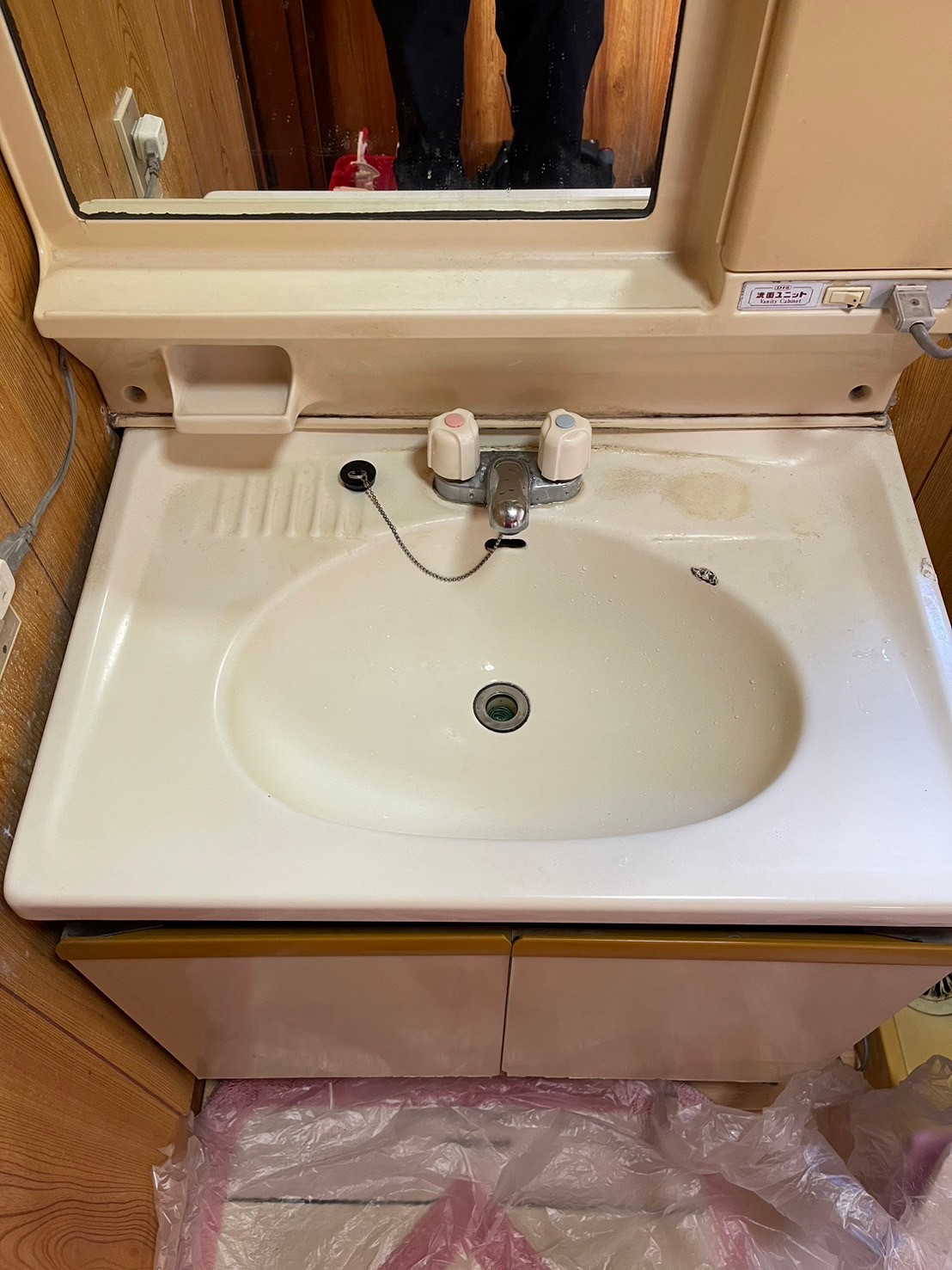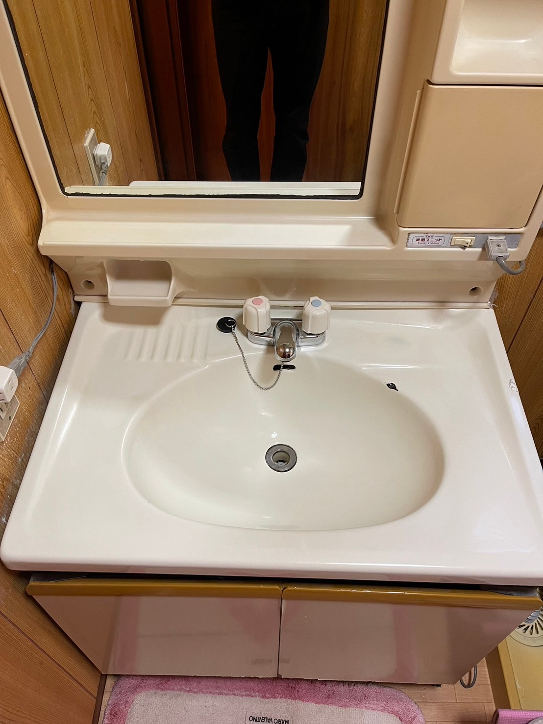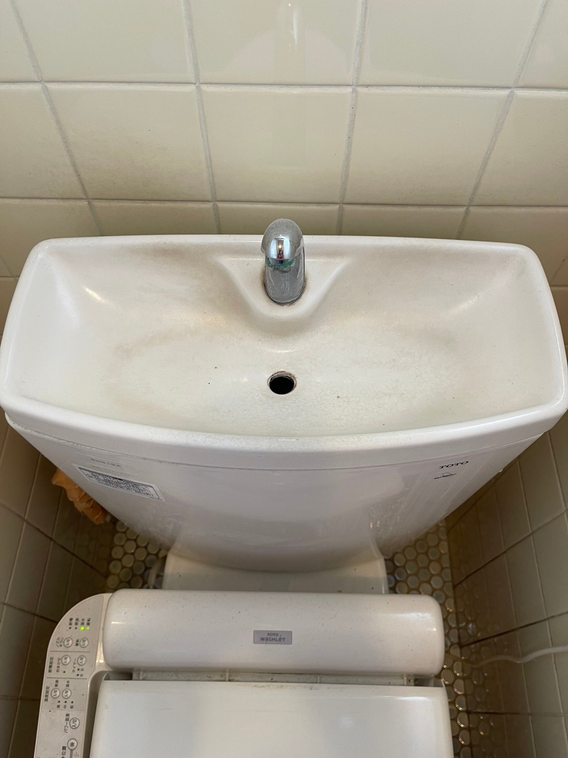 手洗いボウルは水垢やほこりがうっすらと蓄積し始めている状態…こちらもツヤツヤ、ピカピカの状態にリセット◎