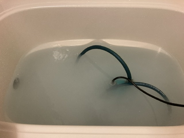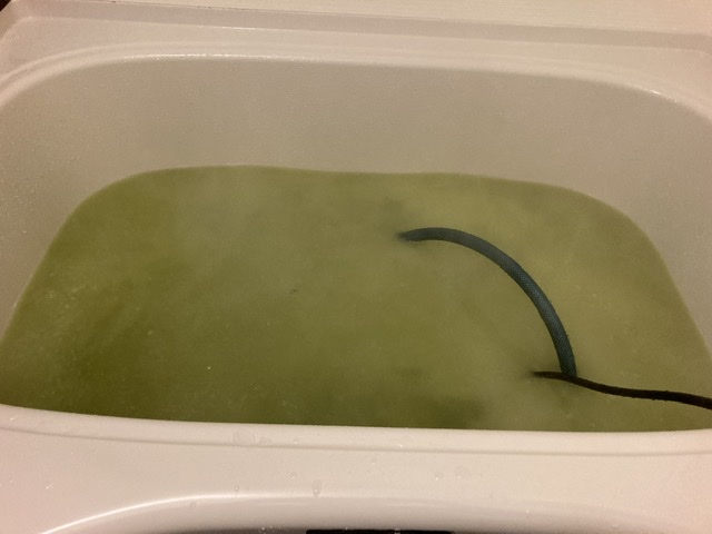 追い焚き配管のお掃除は、配管を取り出してゴシゴシすることは出来ないので、専用の薬剤を通すことで洗浄していきます。