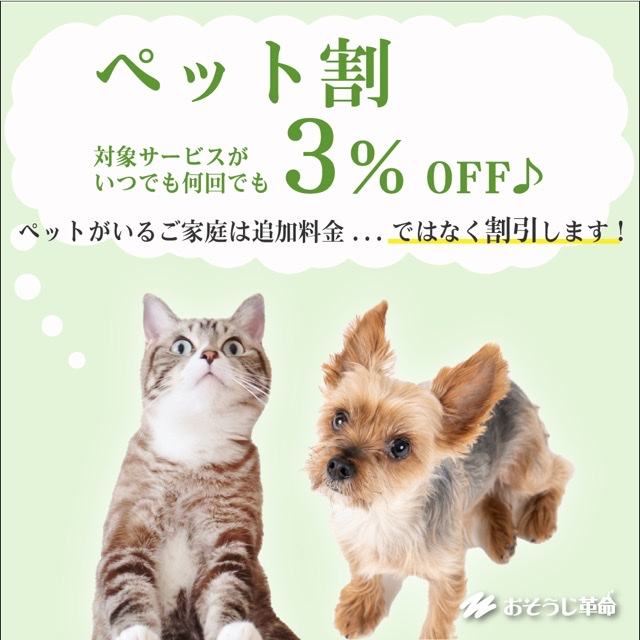 そんな方々を応援するためにおそうじ革命には『ペット割引』というものがあります!!