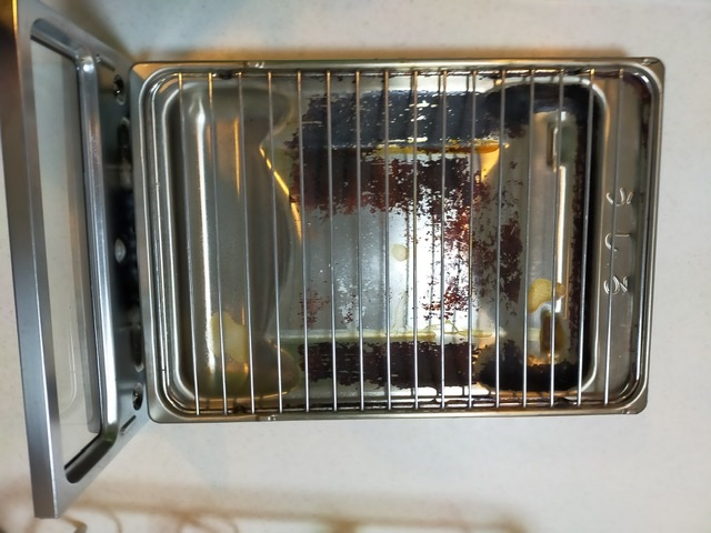 魚焼きグリルの受け皿の焦げ付き。傷をつけずに綺麗に!