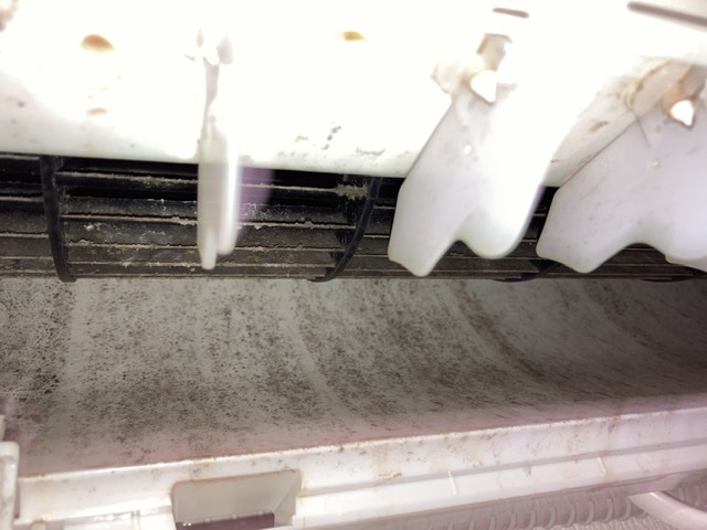 リビングにあるエアコンなので油汚れがかなりついていました。